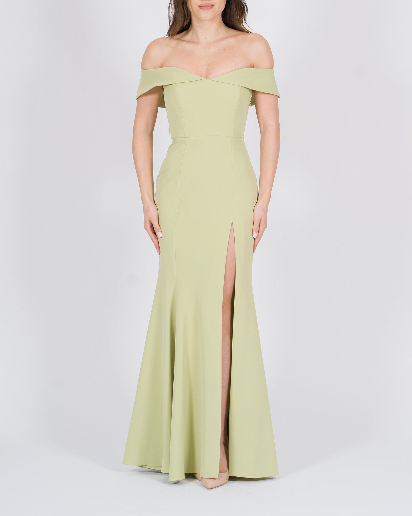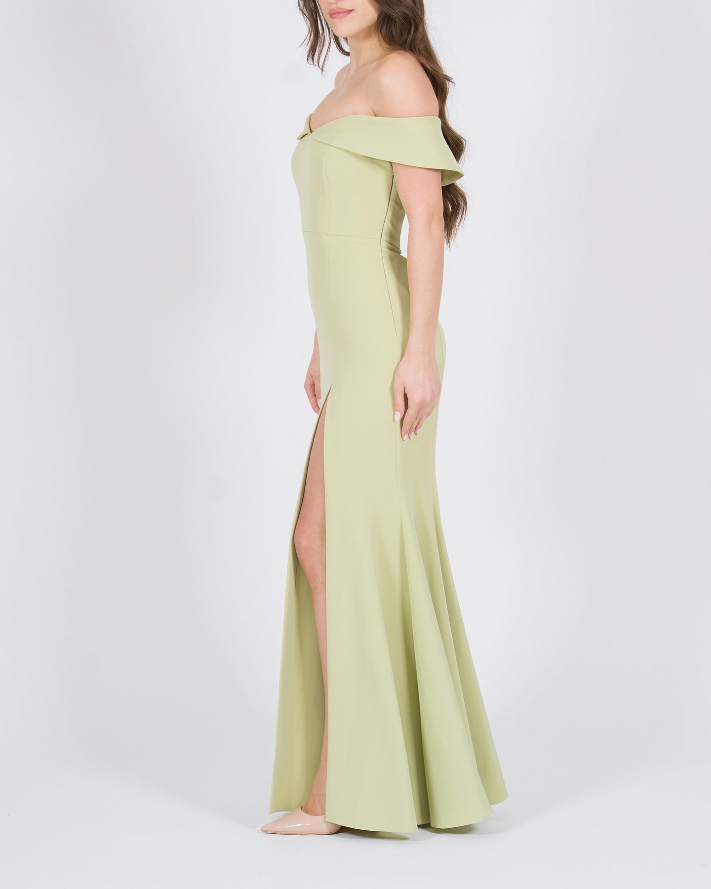 Femminile e sofisticato, l'Abito lungo verde con spacco e scollatura ampia esprime eleganza e charme contemporaneo. La scollatura ampia valorizza il décolleté con delicatezza, mentre lo spacco frontale dona movimento e un allure leggermente sensuale, creando un effetto scenografico ad ogni passo.La tonalità verde intensa conferisce carattere e versatilità, rendendo questo abito perfetto per eventi serali, cocktail esclusivi o cerimonie eleganti. Realizzato in tessuto di alta qualità, garantisce comfort, fluidità e vestibilità impeccabile, trasformando ogni look in un ensemble luxury femminile.Da completare con sandali gioiello, clutch minimal e accessori raffinati per un outfit di grande impatto.