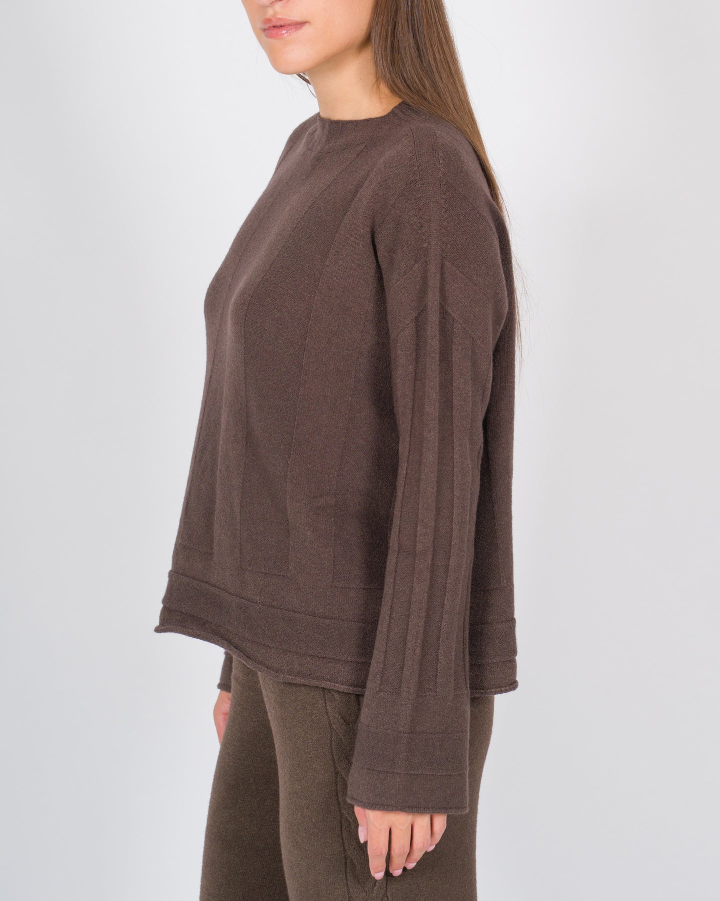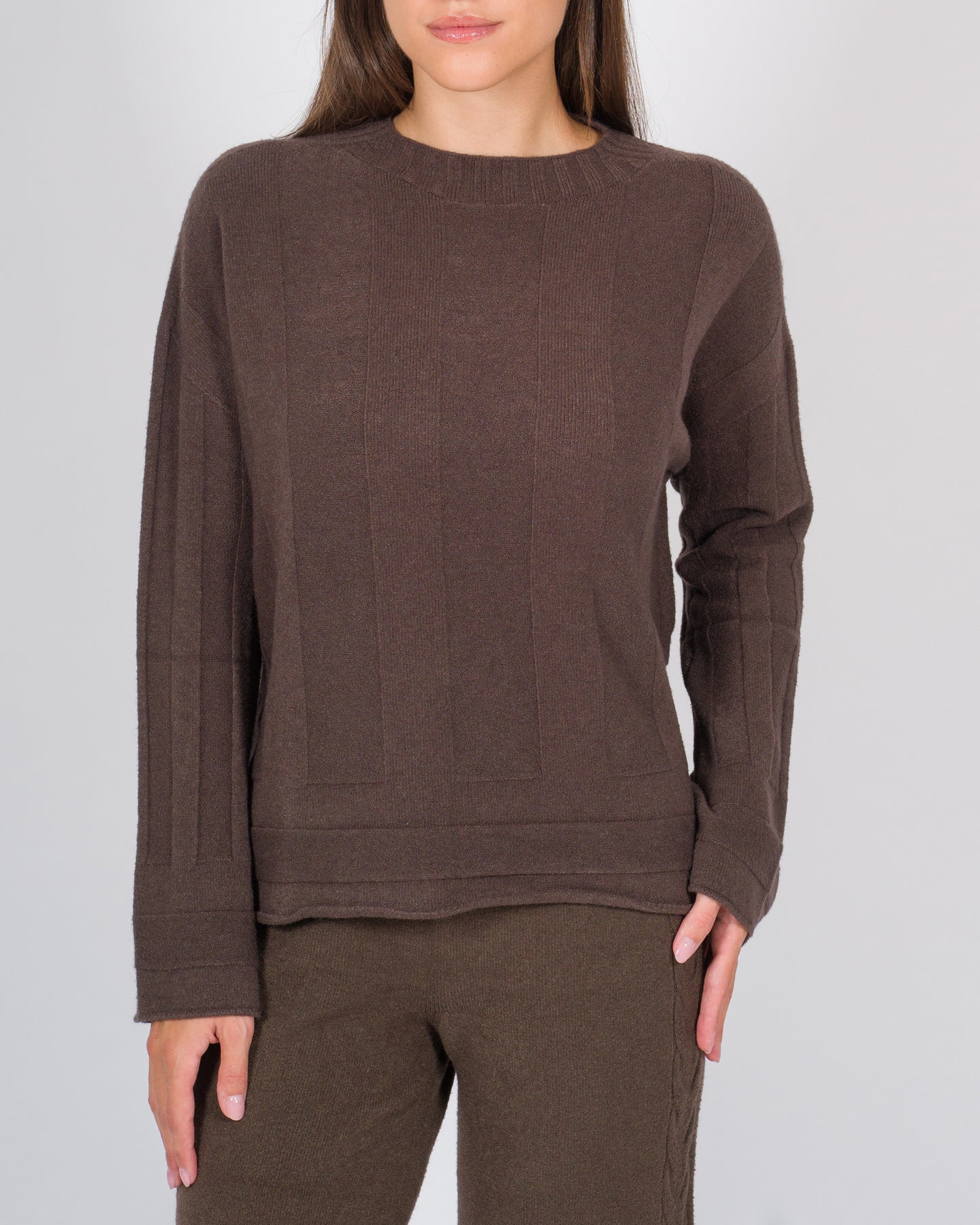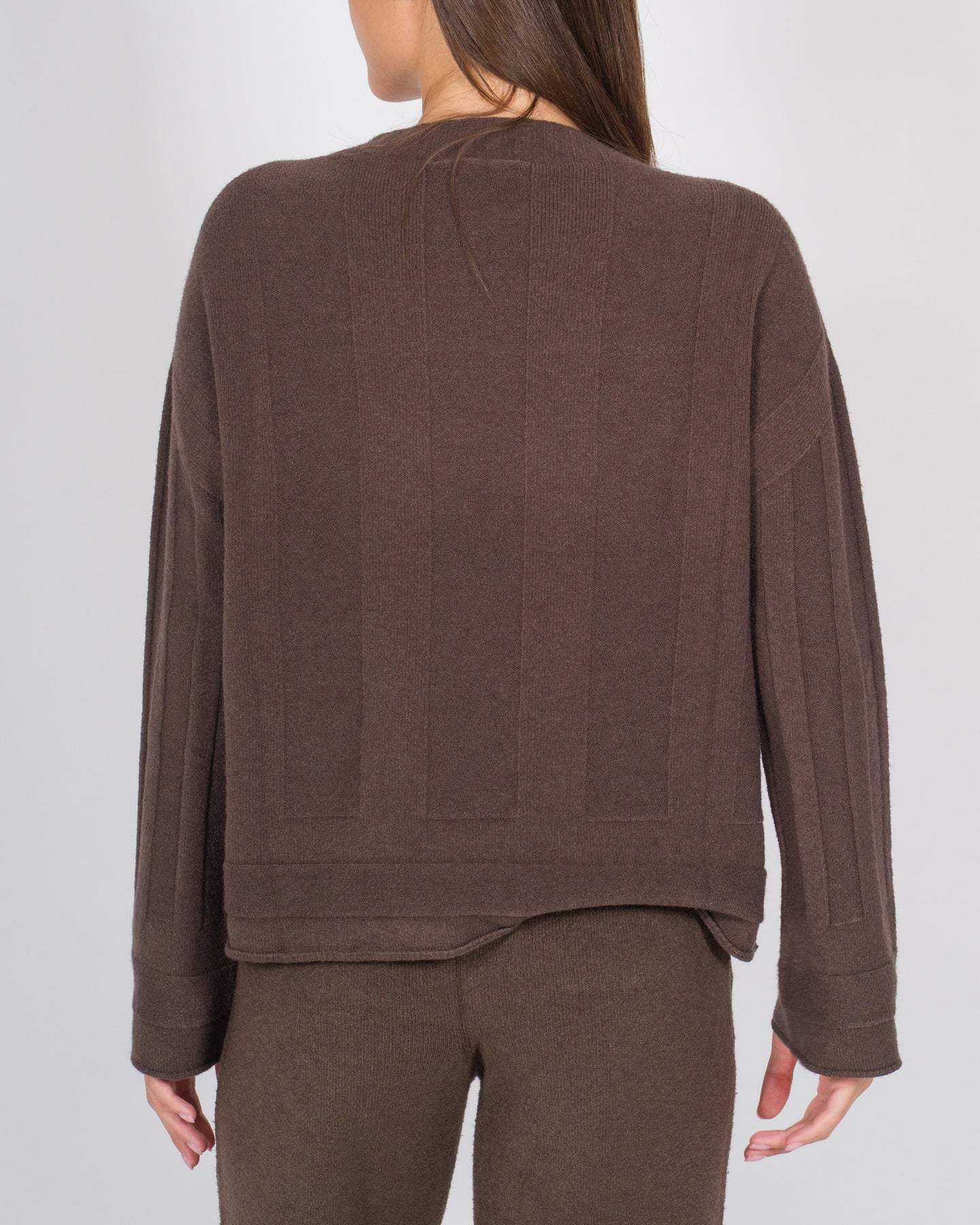 Un modello dallo stile casual e sofisticato, caratterizzato da una lavorazione rigata che dona movimento al tessuto. Realizzata in viscosa dalla mano morbida, presenta volumi comodi e una vestibilità rilassata. Il girocollo rifinito a costine e le maniche larghe esaltano il design contemporaneo, rendendola un capo versatile da indossare ogni giorno.Dettagli:Tessuto: viscosa lavorataColore: cacaoLavorazione rigataGirocollo a costineManiche lunghe e largheFondo a costineVolumi comodi e linea rilassata