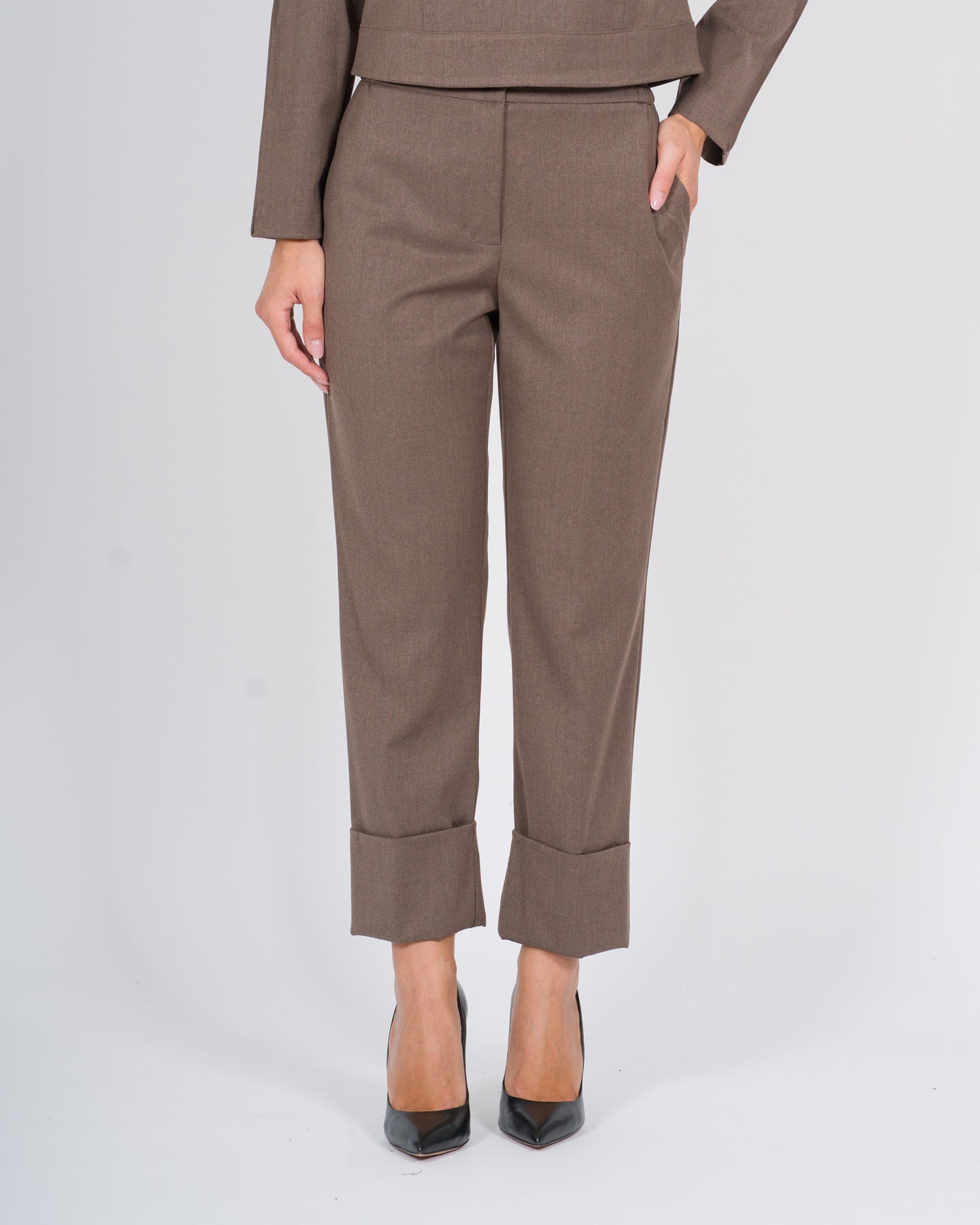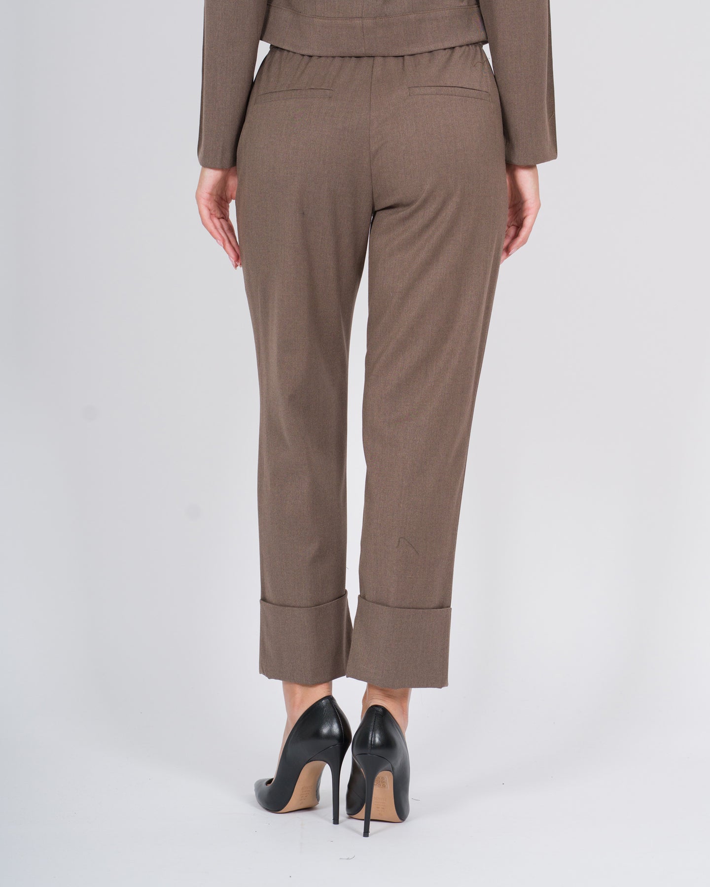 Pantaloni a vita alta con risvolto e vita elasticizzata cacao