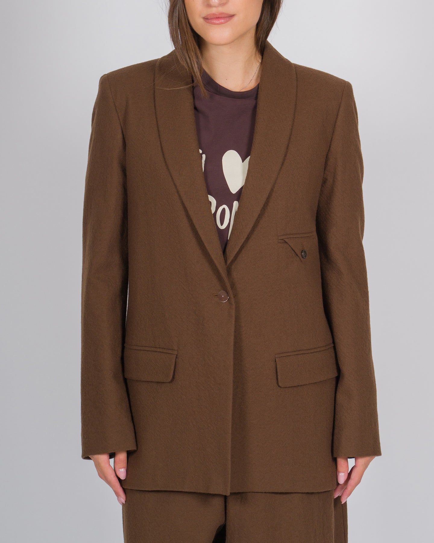 Eleganza classica e dettagli contemporanei si incontrano in questo blazer firmato Alysi. Realizzato in lana tweed di qualità, presenta una chiusura monopetto e un revers a scialle che slancia la silhouette. La vestibilità over garantisce comfort e libertà di movimento, mentre le tasche a filo completano il design con discrezione ed eleganza. La lunghezza leggermente più lunga rende il capo perfetto per layering sofisticati o look urbani moderni.Dettagli prodotto:Materiale: lana tweedVestibilità overMonopetto con revers a scialleTasche a filoLinea lunga e moderna
