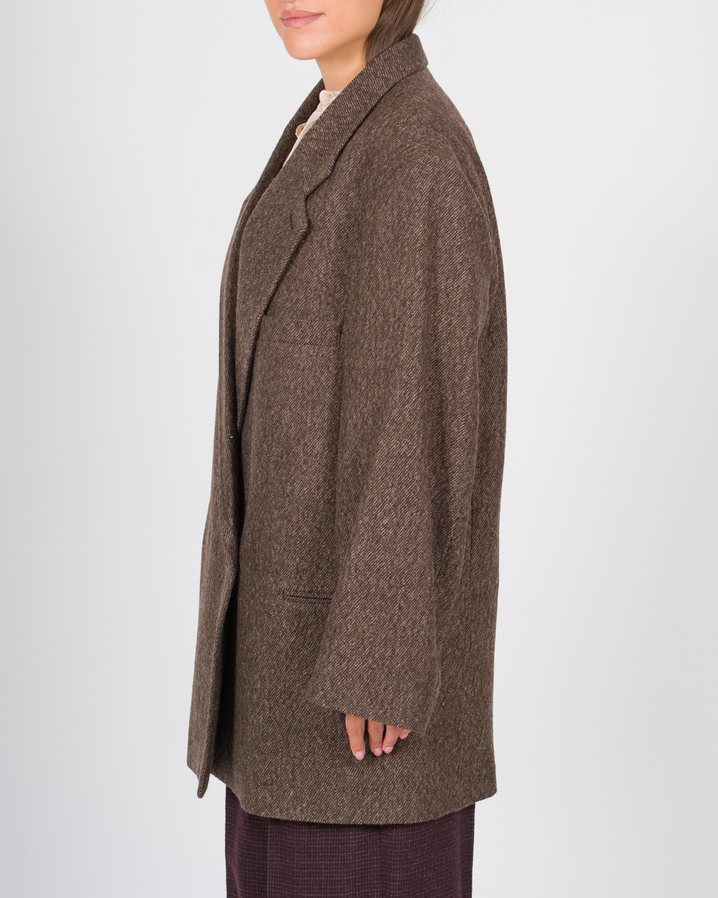 Blazer lungo Alysì in tessuto arancio effetto onda, caratterizzato da una vestibilità over che ne esalta lo stile moderno e disinvolto. La silhouette allungata incontra la particolarità del doppiopetto con chiusura ad un solo bottone e il revers basso, creando un mix di eleganza essenziale e carattere contemporaneo. Un capo statement, perfetto per dare colore e personalità a look casual o più sofisticati.Brand: AlysìModello: Blazer lungoColore: CioccolatoChiusura: doppiopetto con un solo bottoneRevers: bassoTessuto: effetto ondaTasche: a filo Vestibilità: over
