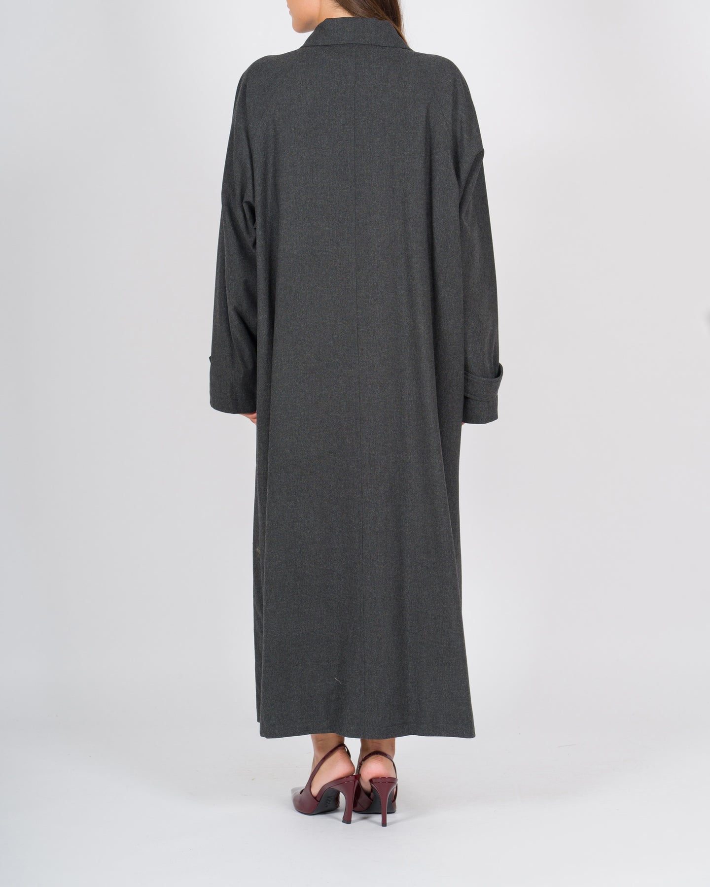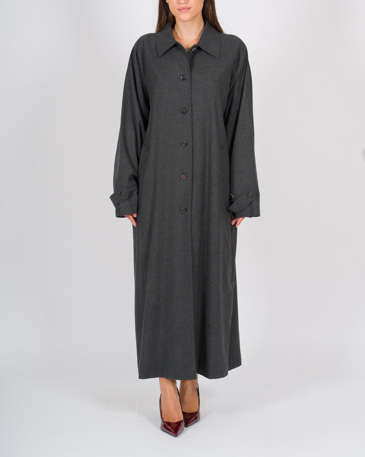Cappotto lungo in lana Alysi colore antracite, caratterizzato da un taglio dritto e leggermente sartoriale che valorizza la figura. Presenta collo a camicia che dona un look classico e sofisticato, e chiusura frontale con bottoni rivestiti, discreti ed eleganti.I dettagli includono:Tasche laterali a filo per un effetto pulito e lineareCuciture sartoriali che definiscono la struttura del capoFodera interna liscia, per facilitare l'indosso e garantire comfortPolsini rifiniti con piccolo dettaglio di cucitura che conferiscono carattere al modelloPerfetto per completare outfit formali e casual-chic, il cappotto Alysi unisce stile, eleganza e funzionalità, assicurando calore e raffinatezza durante tutta la stagione fredda.