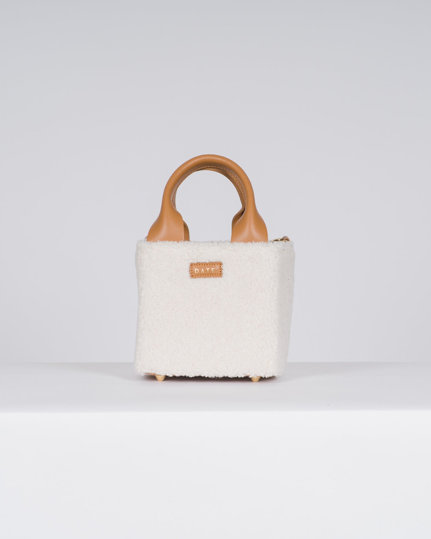 La borsa Cubo di D.A.T.E. è un accessorio compatto e raffinato, realizzato in morbido tessuto teddy color bianca.Caratteristiche principali:Materiale: Tessuto teddy morbido color biancaDimensioni: 15 x 15 x 15 cmChiusura: Coulisse in tessutoManici: Due manici superiori semirigidiTracolla: Regolabile e removibile con moschettoni in metallo color platinoDettagli: Patch frontale con logo D.A.T.E. in platino, piedini di protezione in metallo color platino, tasca piatta internaMade in Italy