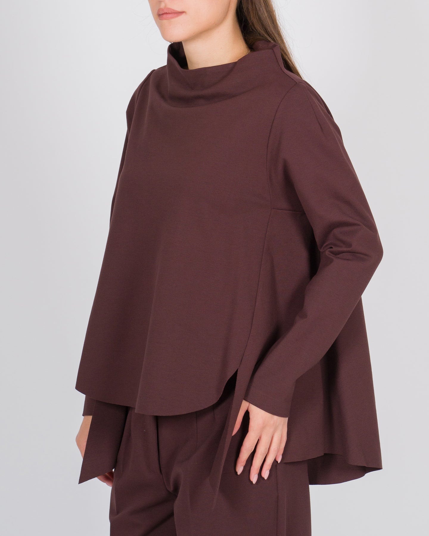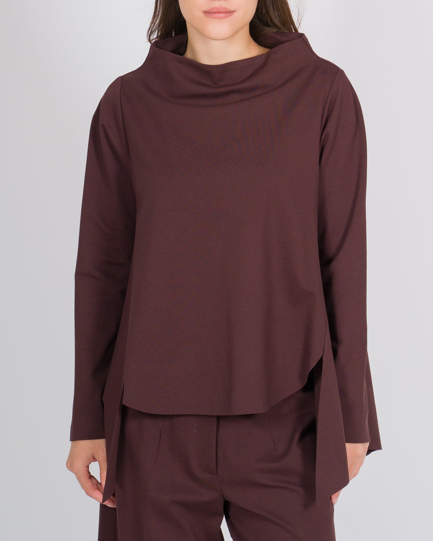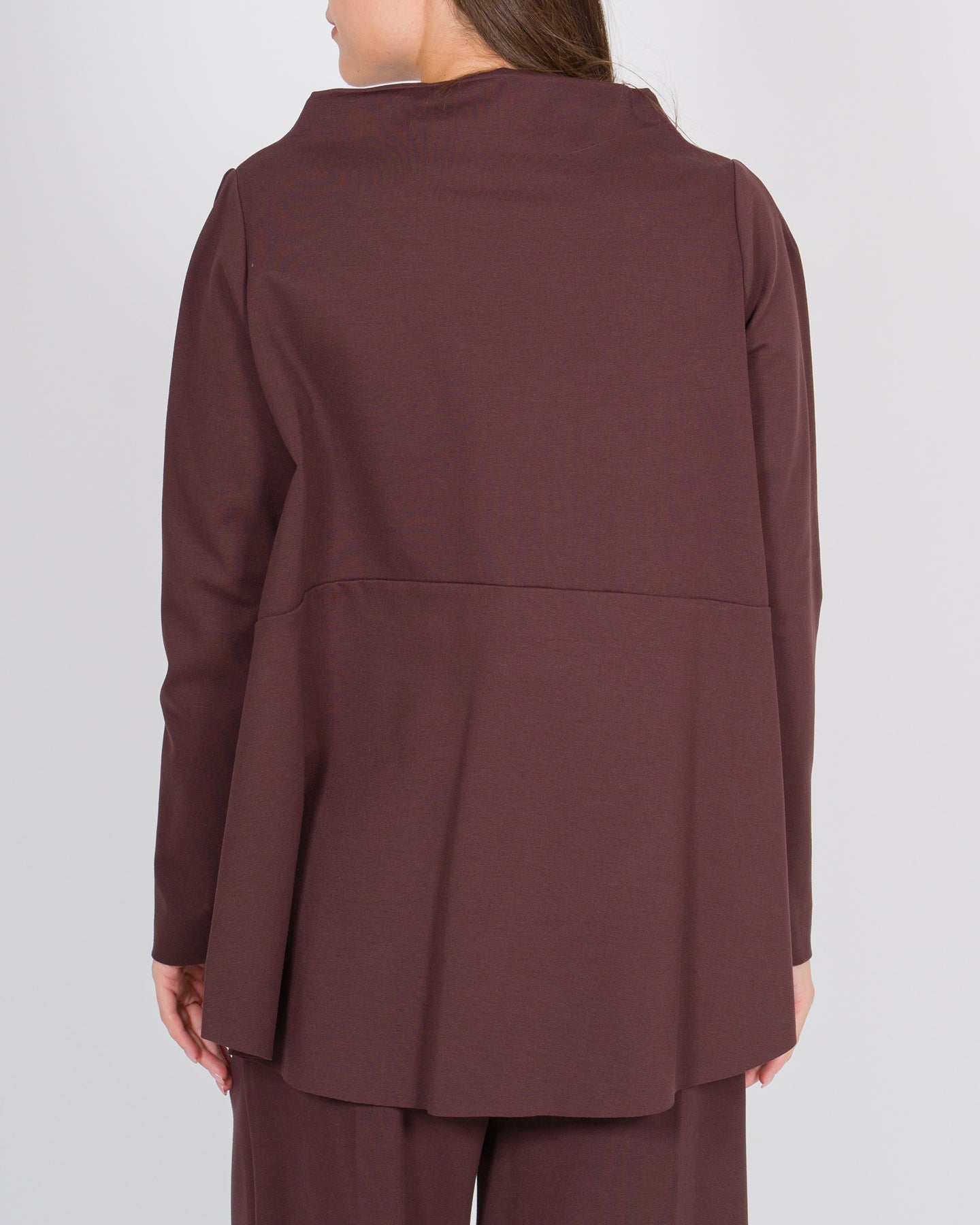 Blusa in jersey con balze posteriori e collo cratere bordeaux