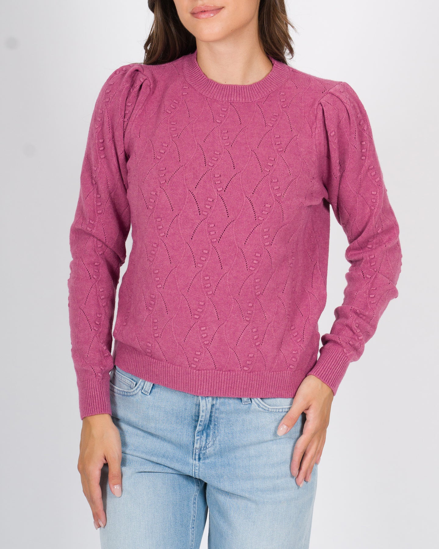 Maglia manica lunga realizzata in morbido tessuto di viscosa, arricchita da una delicata lavorazione a rombi tono su tono, che dona un elegante effetto tridimensionale al capo. Il giro manica a sbuffo aggiunge un tocco femminile e sofisticato, rendendo la maglia ideale sia pe outfit quotidiani che più ricercati.Dettagli tecnici:Tessuto: viscosaLavorazione a rombiManica a sbuffoColore: rosala modella indossa la taglia S/M ed è alta 1.70.