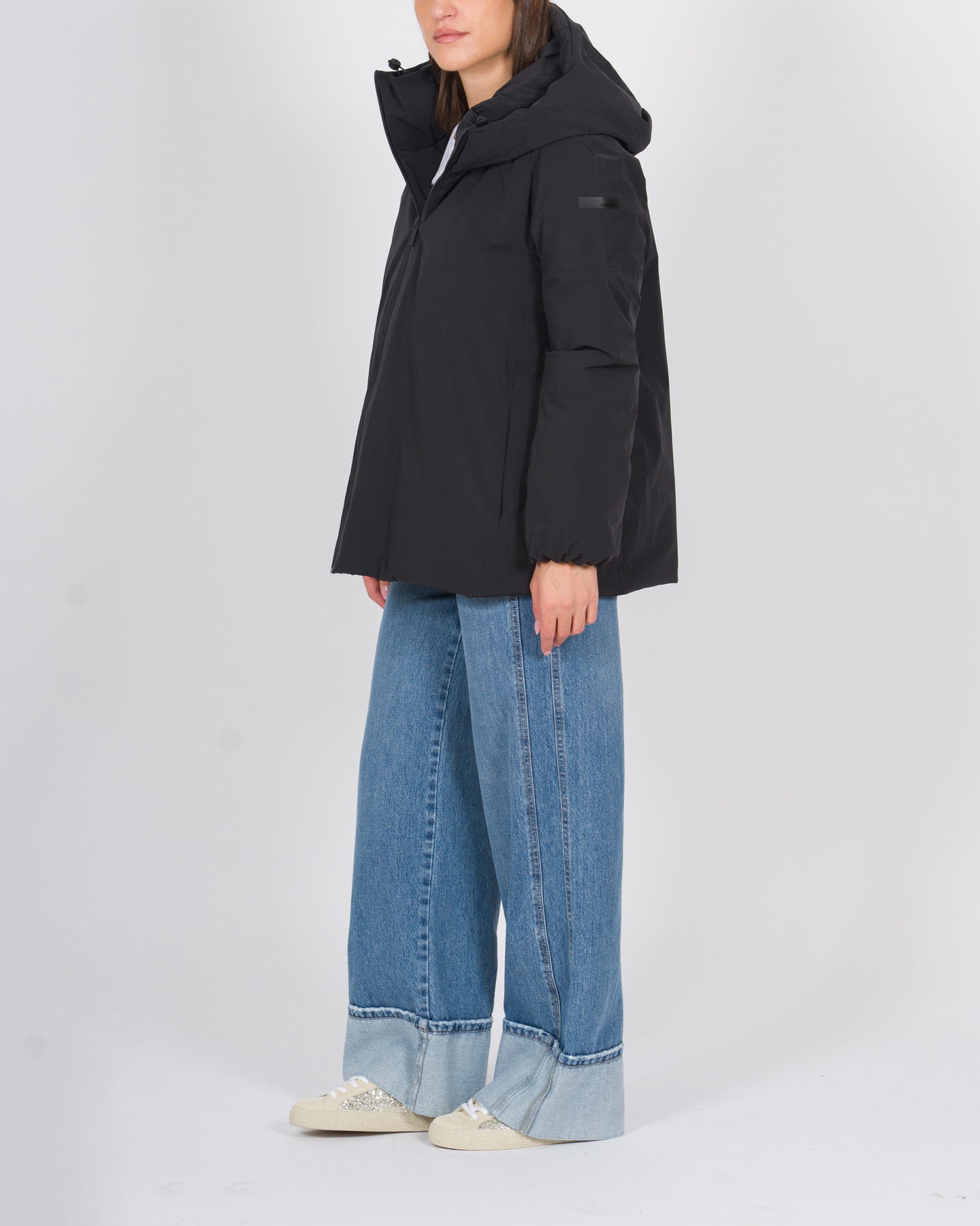 Il parka, che si poggia delicatamente ai fianchi, presenta un taglio over di tendenza. Il cappuccio avvolgente, regolabile con le discrete coulisse elastiche, aggiunge comfort e protezione esaltandone l'attitudine urban. Le coulisse elastiche presenti sul fondo della giacca consentono di modellare la silhouette secondo l'effetto desiderato, creando una linea a ovetto ideale per la donna che ama giocare con le proporzioni e le forme. Realizzato in tessuto a membrana traspirante, il capospalla presenta il finish opaco dell'esterno in esclusivo Montecristo. I canali tubici privi di impunture contengono la calda e morbida imbottitura in piuma d'anatra. La chiusura a zip gommata, le tasche dotate di zip invisibili e il logo a microiniezione sulla manica sinistra sono le note di stile che ne impreziosiscono il design minimal e rendono il capo versatile. Perfetto per la donna che ama un capospalla contemporaneo, il parka può essere abbinato a una maglia in velluto con scollo a V e al pantalone a sigaretta con tasca alla francese, nella creazione di un look grintoso.