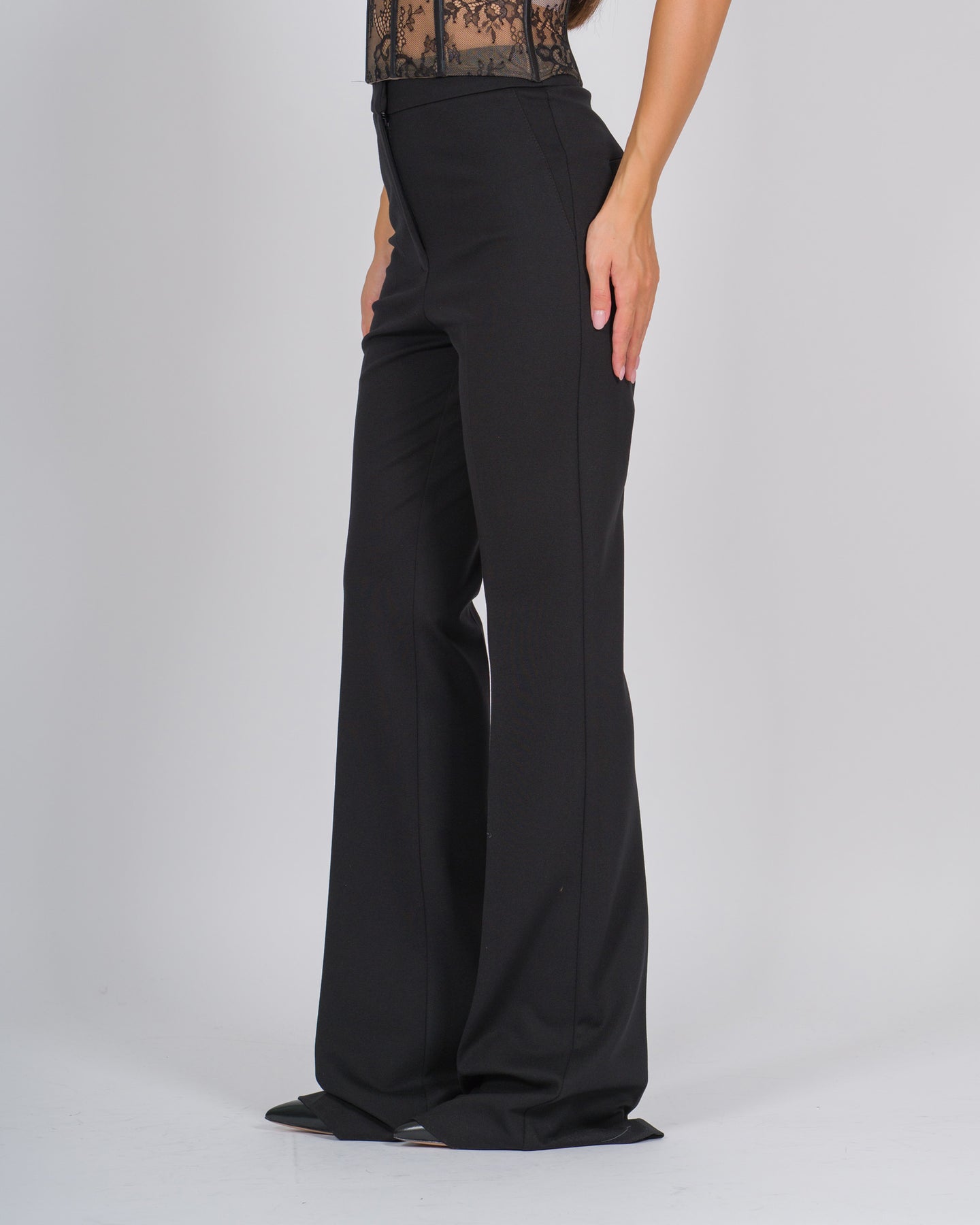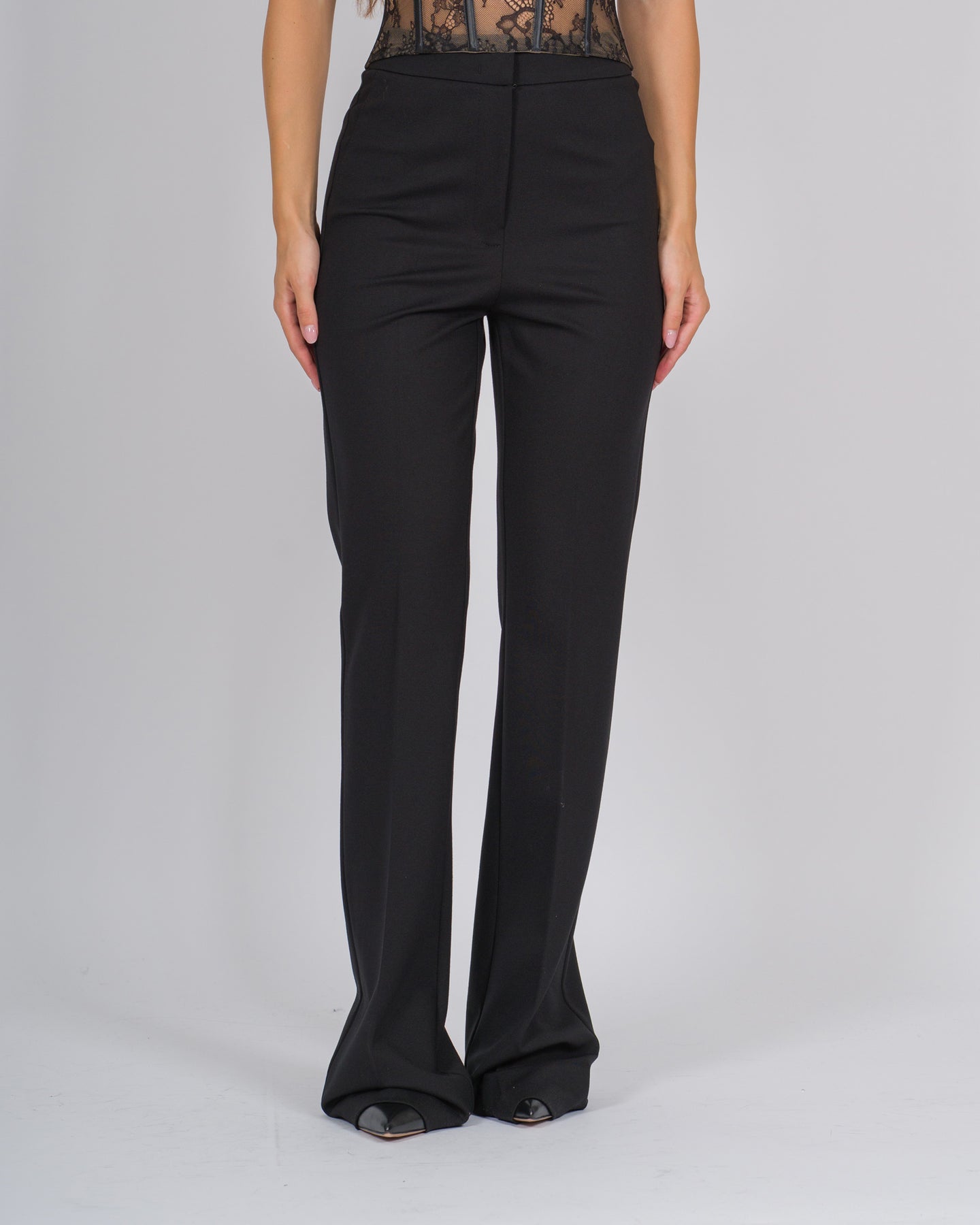 Il pantalone Silence in crepe nero unisce eleganza e stile contemporaneo. Caratterizzato da una vita alta, valorizza la silhouette, mentre la coscia stretta e il taglio largo e lungo al fondo creano un effetto fluido e slanciato, perfetto per un look sofisticato e moderno.Le tasche a filo completano il design, conferendo pulizia e minimalismo, mentre il tessuto crepe garantisce comfort, movimento e un'eleganza naturale. Questo capo è ideale per essere abbinato a camicie raffinate, blazer sartoriali o top eleganti, sia in contesti professionali che in occasioni serali.
