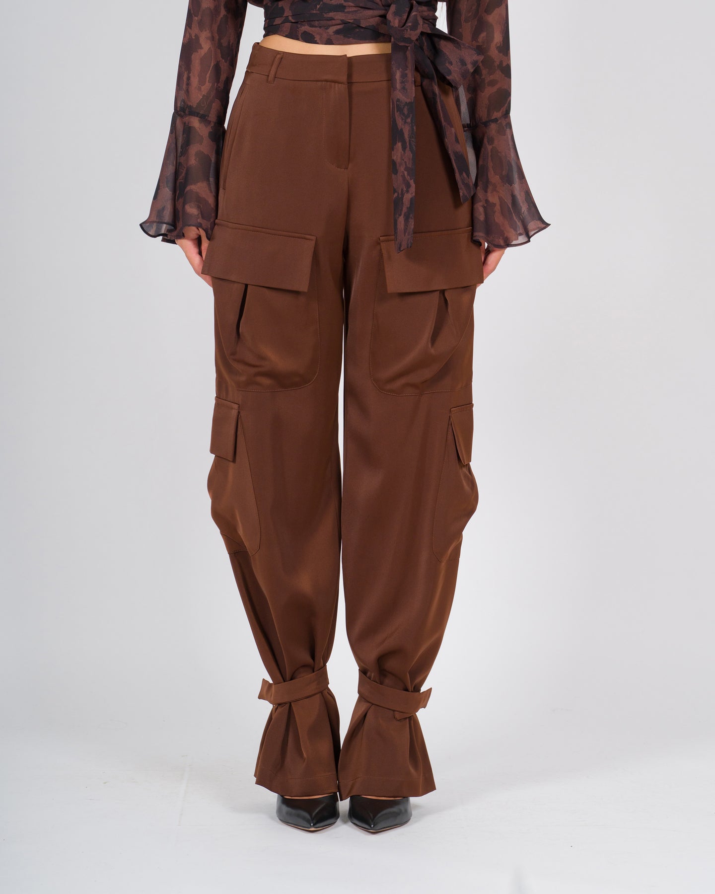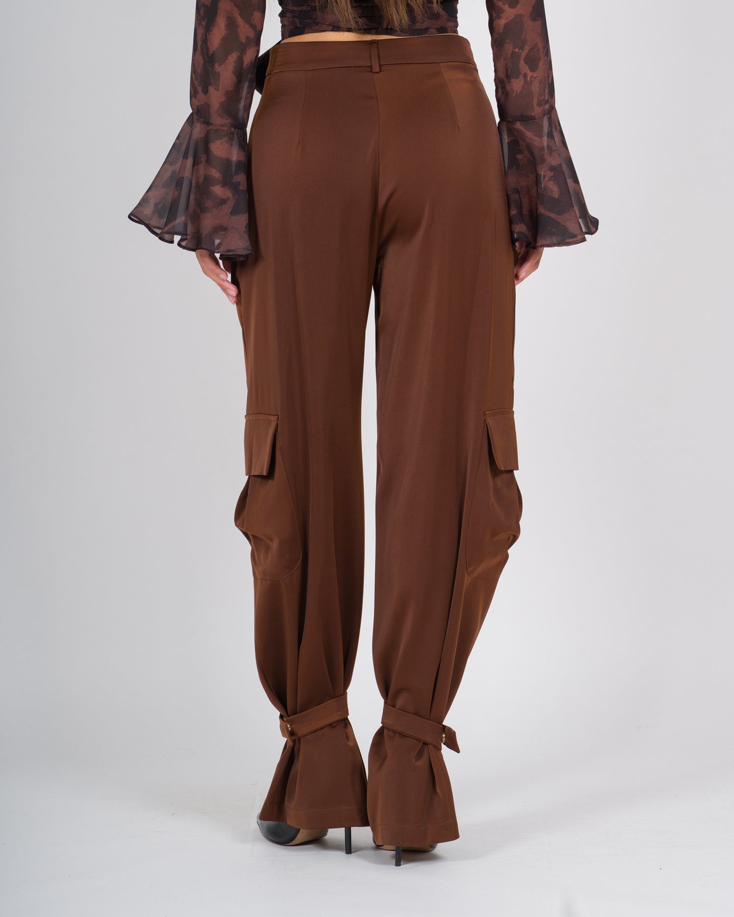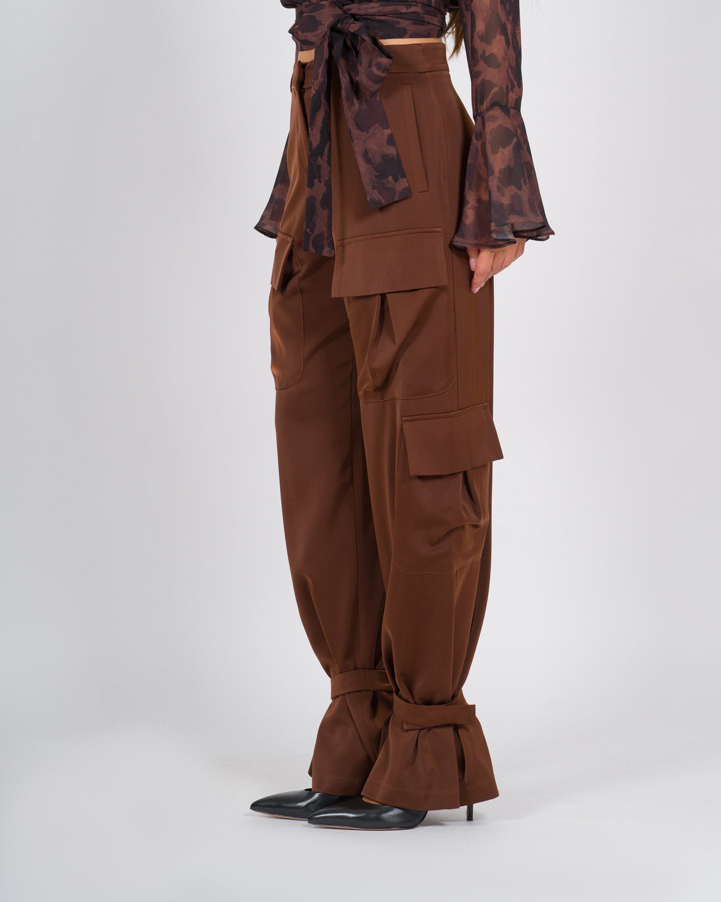 Pantalone Silence marrone dal design contemporaneo e utility, caratterizzato da tasconi laterali in stile cargo e da lacci regolabili alle caviglie che permettono di personalizzare la vestibilità. Un capo pratico e di tendenza, perfetto per look casual-chic dal carattere deciso.Dettagli del capo:Modello cargo con grandi tasconi applicati sui latiVita regolare, per comfort quotidianoLacci alle caviglie, che consentono di regolare il fit e creare volumeVestibilità morbida, ideale per outfit rilassati ma curatiColore marrone, versatile e facilmente abbinabilePerfetto da indossare con t-shirt, camicie o giacche leggere, per creare look urban, casual o street-chic.