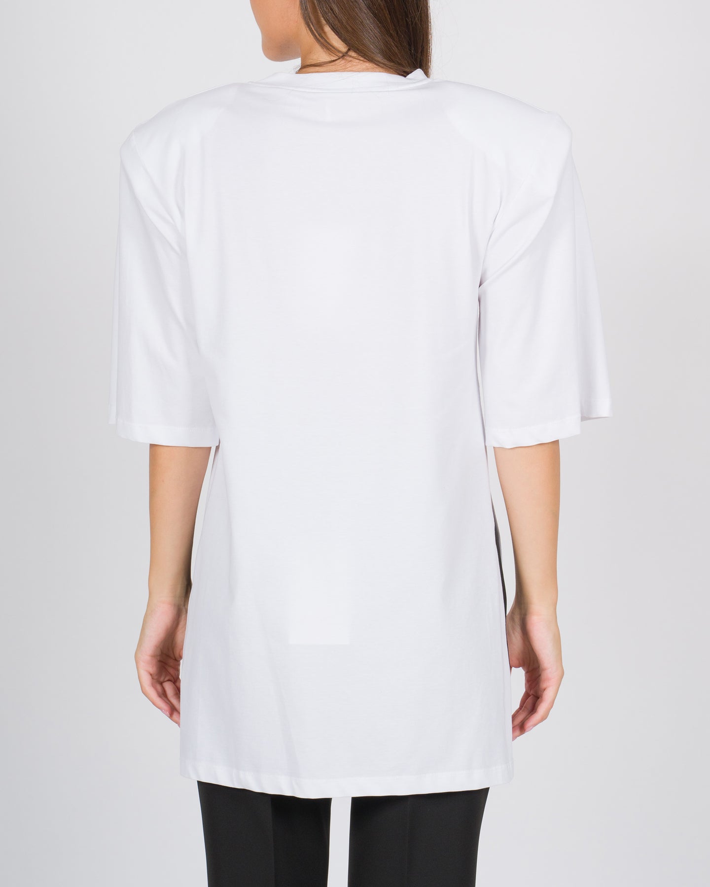 T-shirt Silence in cotone bianca, caratterizzata da spalline lunghe che donano un tocco originale e moderno al classico capo basic. Realizzata in cotone morbido e traspirante, garantisce comfort e vestibilità durante tutta la giornata.Dettagli del capo:Tessuto in cotone, leggero e confortevole a contatto con la pelleSpalline lunghe, che aggiungono stile e un dettaglio distintivoTaglio dritto e versatile, perfetto da abbinare a pantaloni, gonne o jeansColore bianco, facile da coordinare con diversi outfitPerfetta per creare look casual, quotidiani o chic con accessori, un capo essenziale dal design semplice ma ricercato.