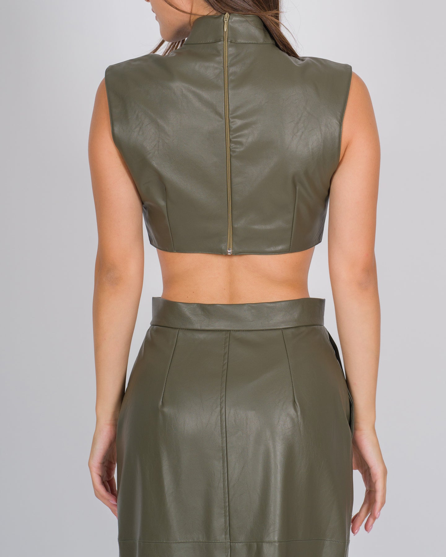 Un capo dal carattere deciso e contemporaneo, questo top cropped firmato Silence Limited è realizzato in pelle verde di alta qualità. Il modello presenta una vestibilità giro manica e un mezzo collo strutturato, che conferiscono un tocco sofisticato e moderno. Il taglio cropped valorizza la silhouette e permette di abbinarlo facilmente a pantaloni o gonne a vita alta, creando look urbani e dallo stile deciso.Dettagli prodotto:Colore: verdeMateriale: pelleTaglio: croppedGiro manicaMezzo collo strutturatoLinea moderna e versatile