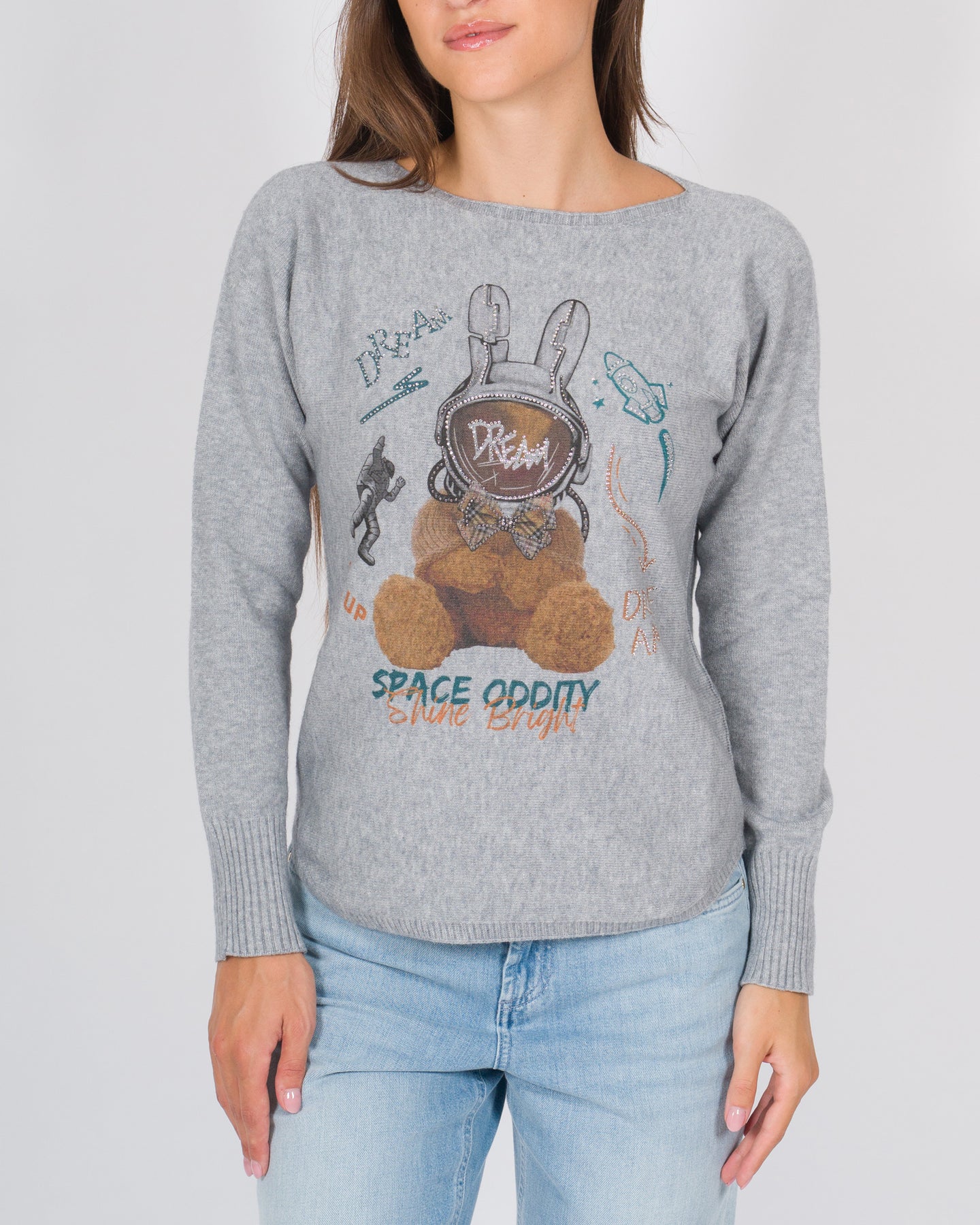 Un capo essenziale che unisce comfort e stile. Questa maglia in misto viscosa e lana si distingue per la texture morbida e leggera, ideale da indossare nelle mezze stagioni o sotto un cappotto nei mesi più freddi. Il grigio neutro rende il modello estremamente versatile, mentre la stampa frontale Dream aggiunge un tocco grafico e contemporaneo. I polsini a coste assicurano una vestibilità più definita e valorizzano la linea pulita del design.Dettagli:Colore: grigioComposizione: viscosa e lana (misto leggero)Stampa frontale: scritta DreamGirocolloManiche lunghePolsini e fondo a costeVestibilità regolare