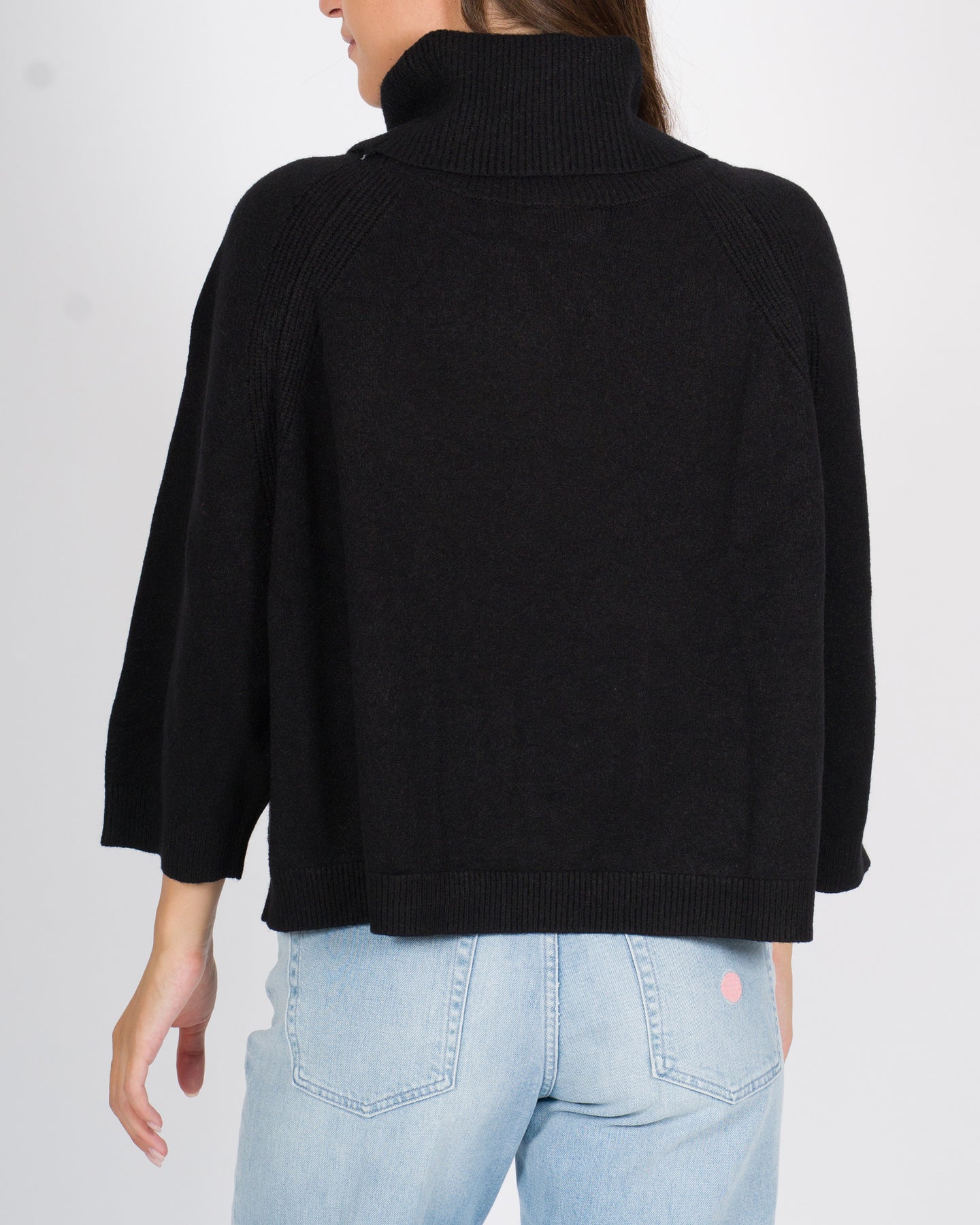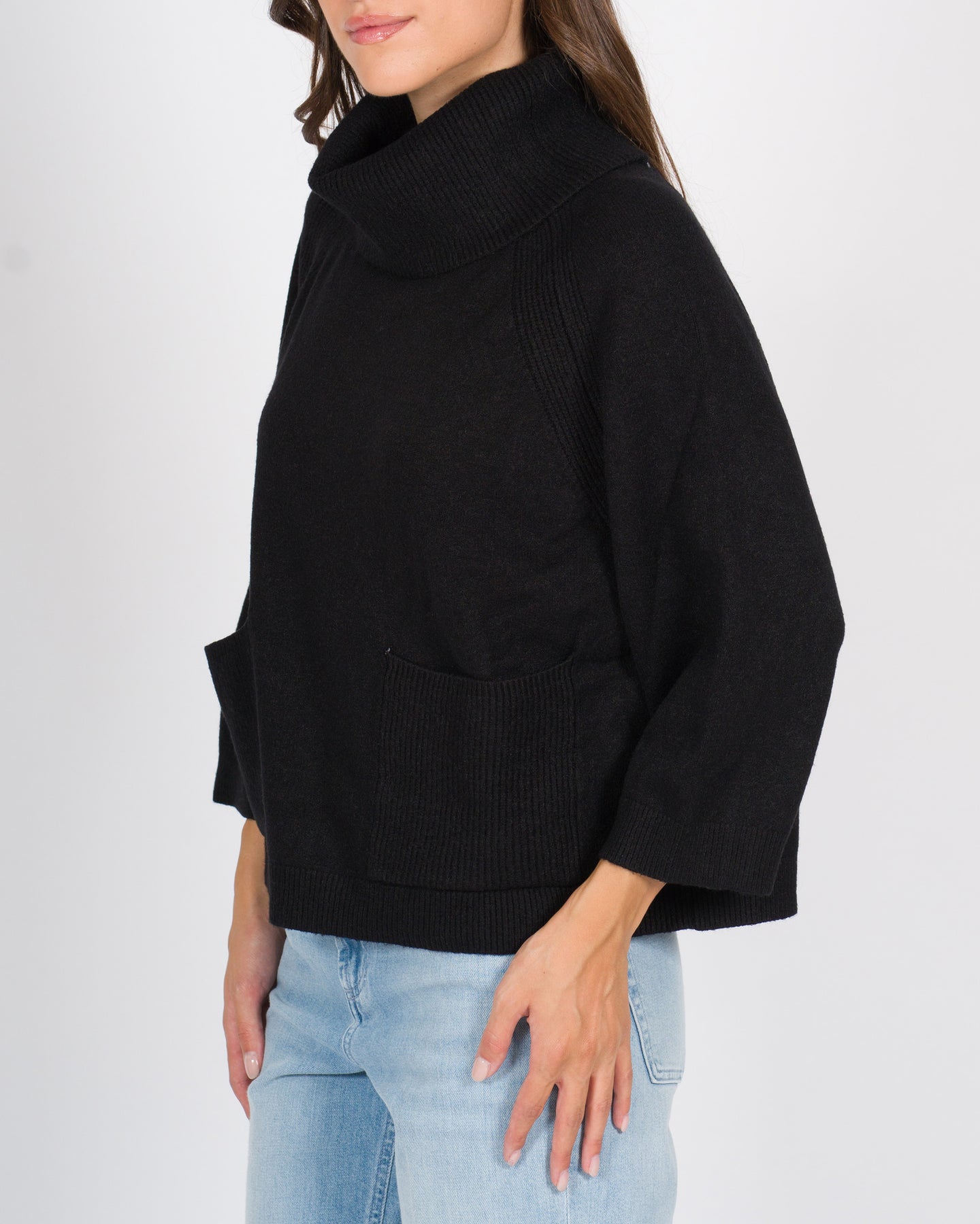 Maglia dal taglio over reallizzata in morbido tessuto di viscosa, perfetta per look casual ma curati.Caratterizzata da un collo ciambella avvolgente, maniche raglan ampie e fluide, e da due tasconi frontali applicati, che aggiungono un toccco funzionale e contemporaneo al design.Dettagli tecnici:•Vetibilità over •Due tasconi •Collo ciambella•Tessuto: viscosa •Colore: neroLa modella indossa la taglia S/M ed è alta 1.70