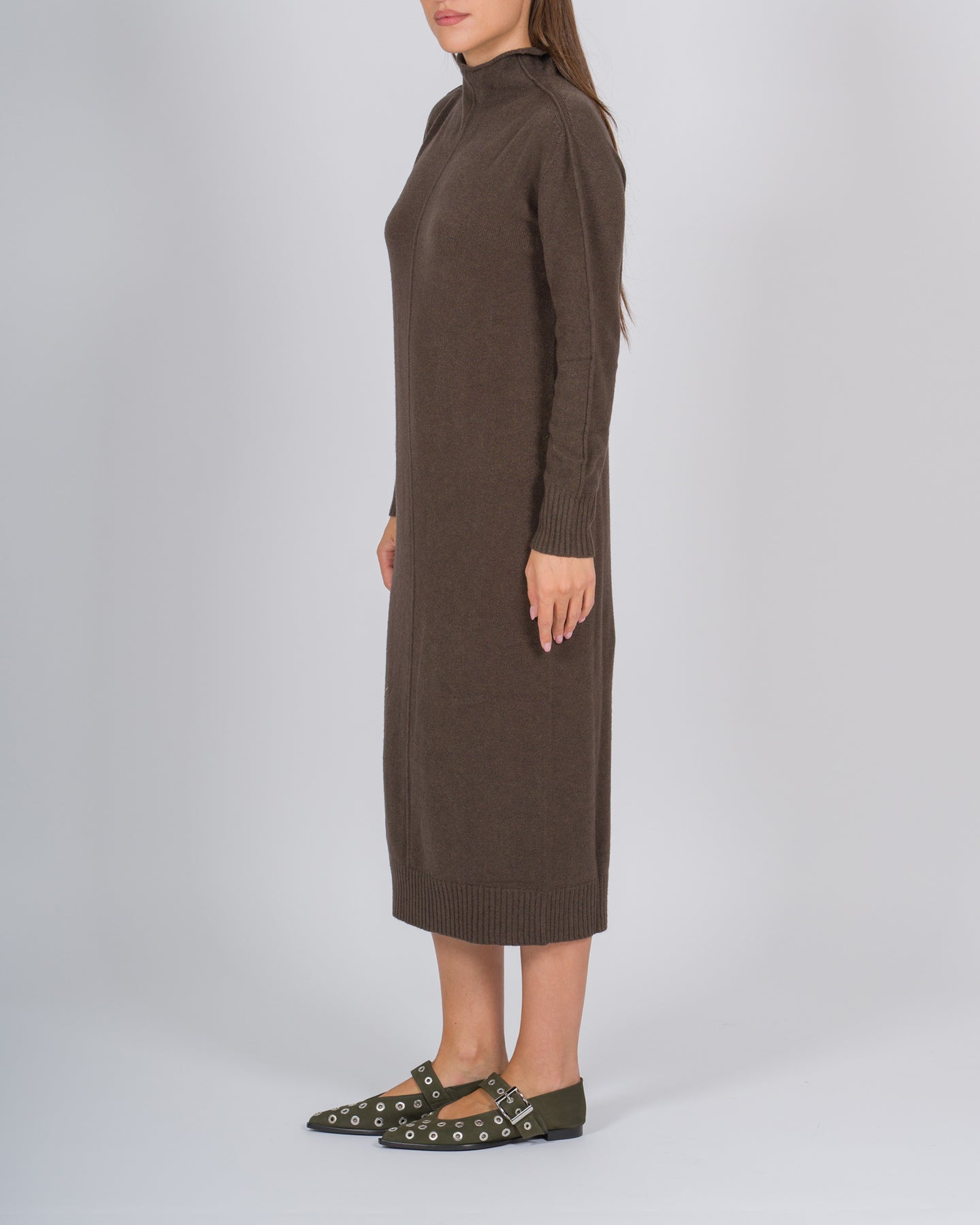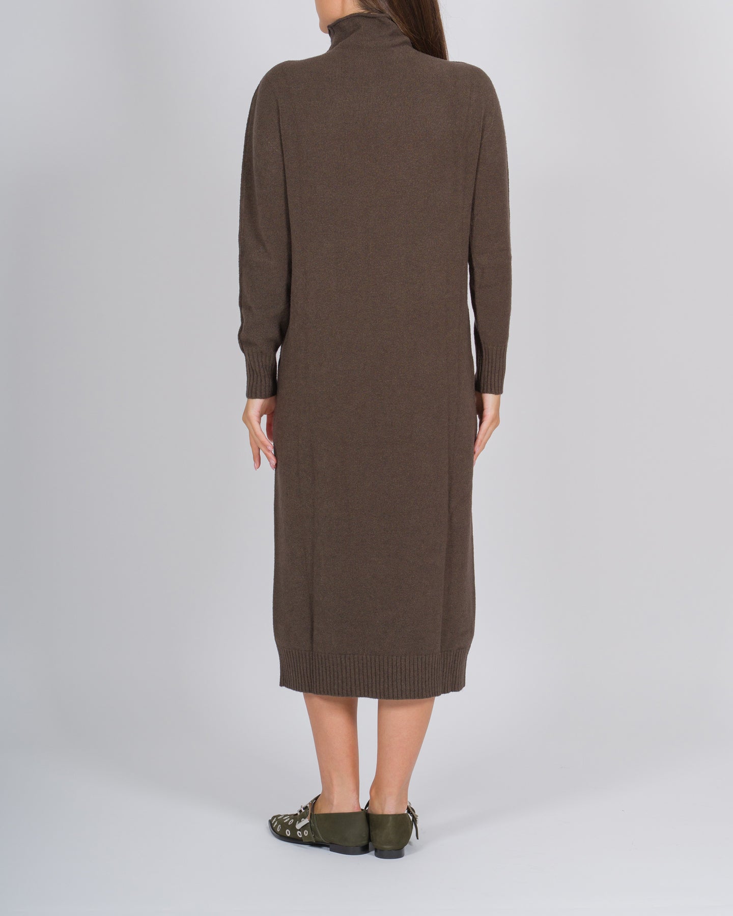 Minimal e sofisticato, questo abito in tessuto di viscosa effetto maglia unisce comfort e femminilità. La linea essenziale è arricchita dal collo lupetto e dalla riga centrale a contrasto che slancia la silhouette. Perfetto sia per il giorno con anfibi o sneakers, sia per la sera con stivali o tacchi.Dettagli:Tessuto: viscosa effetto magliaColore: cacoCollo lupettoManiche lungheRiga centrale sul davantiVestibilità regolare