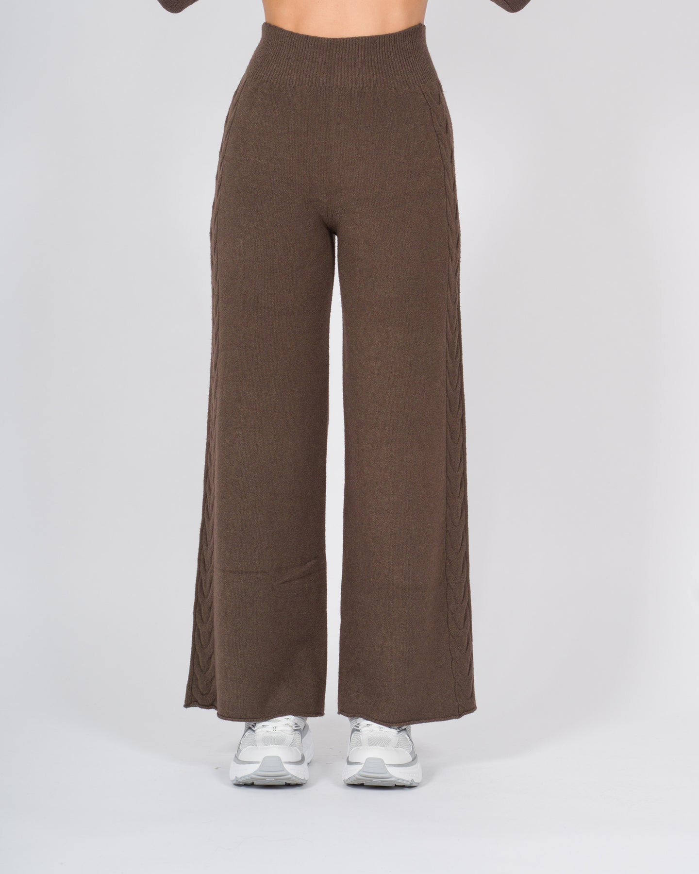 Questi pantaloni cacao della linea Up To Be uniscono comfort e stile in un design versatile e raffinato. Realizzati in tessuto misto lana e viscosa, presentano vita elasticizzata che assicura una vestibilità comoda e pratica. La gamba dritta slancia la figura, mentre il dettaglio a treccia laterale aggiunge un tocco distintivo e contemporaneo, ideale sia per look casual-chic che per outfit più eleganti.Dettagli:Colore: cacaoVita elasticizzataModello a gamba drittaDettaglio a treccia lateraleTessuto: lana e viscosaLinea: Up To BeComposizione e curaComposizione: lana, viscosa Made in Italy (se applicabile)Lavare a secco