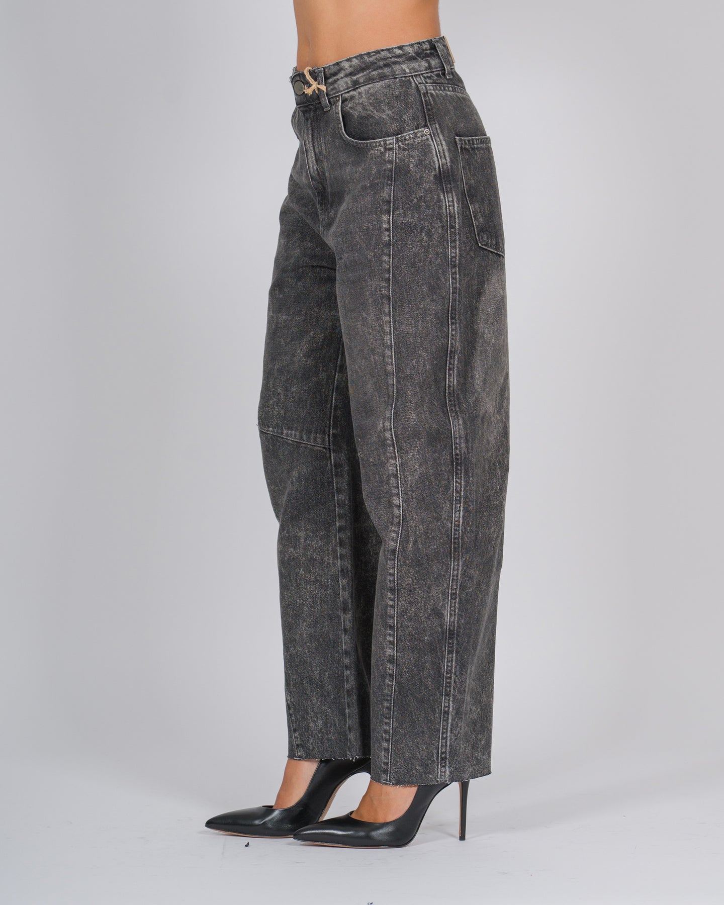 I jeans Roxy di Noir N Blu reinterpretano lo stile urbano con un approccio moderno e audace. Realizzati in denim nero marmorizzato, questi jeans presentano una vestibilità baggy, offrendo comfort e un volume contemporaneo, ideale per look casual e streetwear.Le doppie cuciture aggiungono un dettaglio tecnico e distintivo, valorizzando la struttura del capo e creando un contrasto grafico elegante. Il lavaggio marmorizzato conferisce profondità e carattere, rendendo ogni paio unico e versatile.