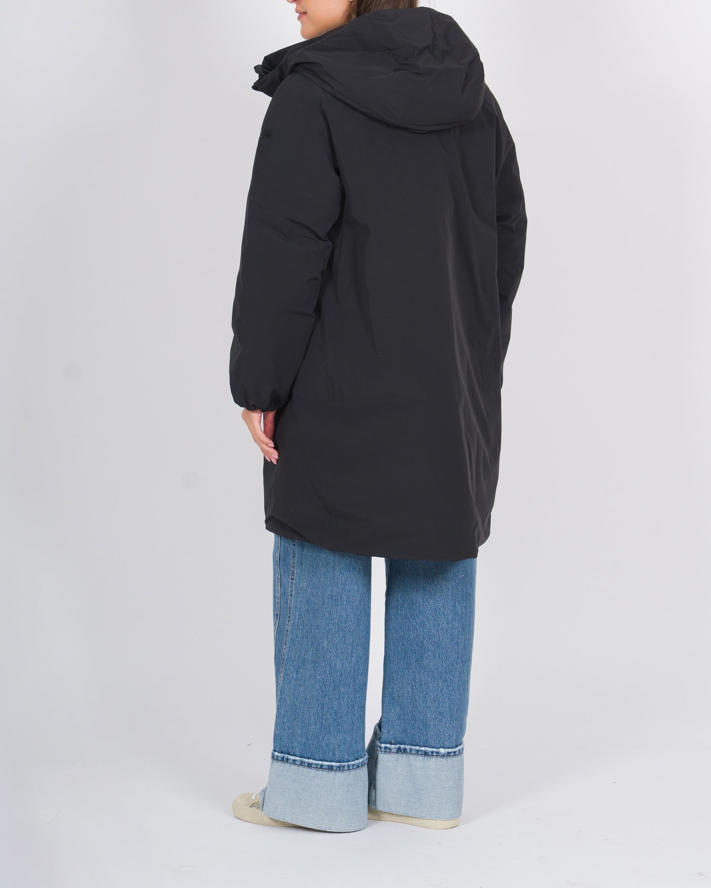 Questo parka con lunghezza al ginocchio si distingue per le linee minimaliste e per il taglio over dal look personalizzabile, attraverso la regolazione con coulisse elastica del cappuccio avvolgente e del fondo, in una gradevole forma a ovetto. Il capospalla dinamico e dal fascino discreto è perfetto per affrontare le fredde giornate invernali, sia in città, sia in contesti outdoor. Realizzato in tessuto a membrana impermeabile e traspirante con esterno nell'esclusivo Montecristo dalla finitura opaca, il parka presenta la morbida e calda imbottitura in piuma d'anatra racchiusa nei canali tubici senza impuntura. La zip gommata che slancia il davanti e le tasche dotate di zip invisibili aggiungono una nota di stile distintivo a questo capo versatile, completato all'interno dalla tag a cuore "Made with love, designed in Tuscany" e dall'iconico logo nero a microiniezione sulla manica sinistra.