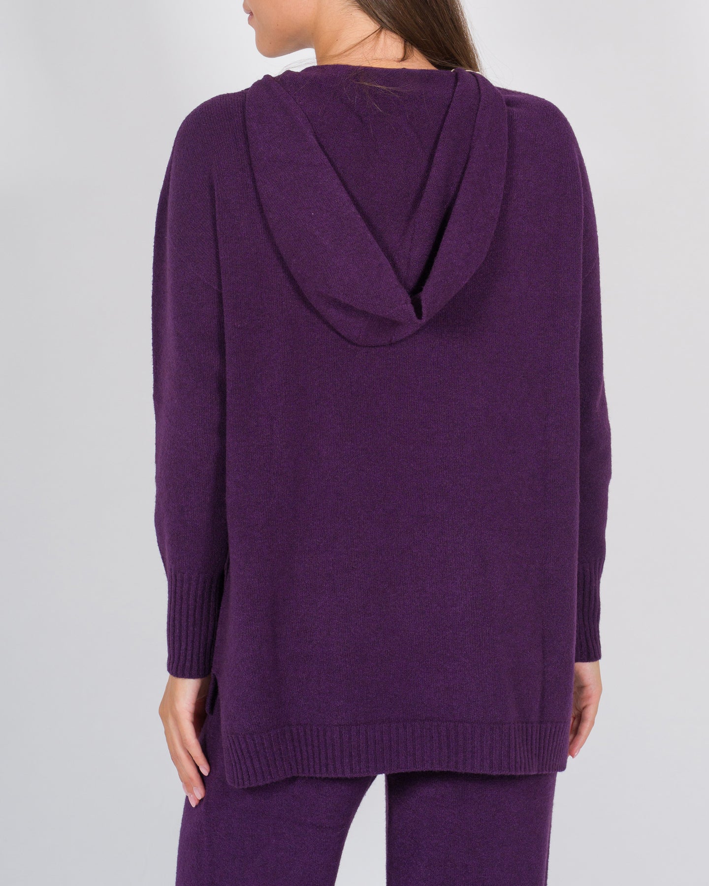 Felpa dallo stile casual e avvolgente, realizzata in morbida maglia di lana. Il design unisce comfort e praticità grazie al cappuccio ampio e ai tasconi applicati sul davanti. Perfetta per le giornate più fredde, è un capo versatile da indossare sia in casa che all'aperto, sopra jeans o pantaloni comodi.Dettagli tecnici:•Vestibilità morbida•Maglia calda e traspirante•Cappuccio •Composizione: lana e viscosa•Colore: vinoLa modella indossa la taglia S ed è alta 1.70