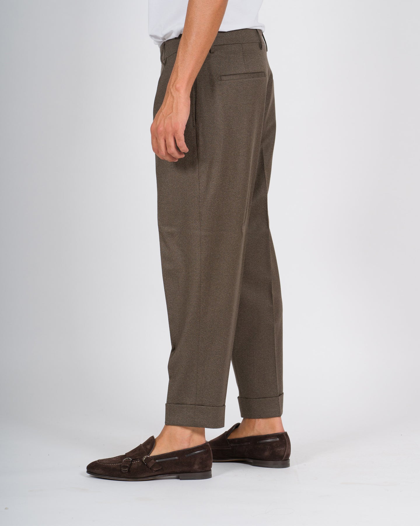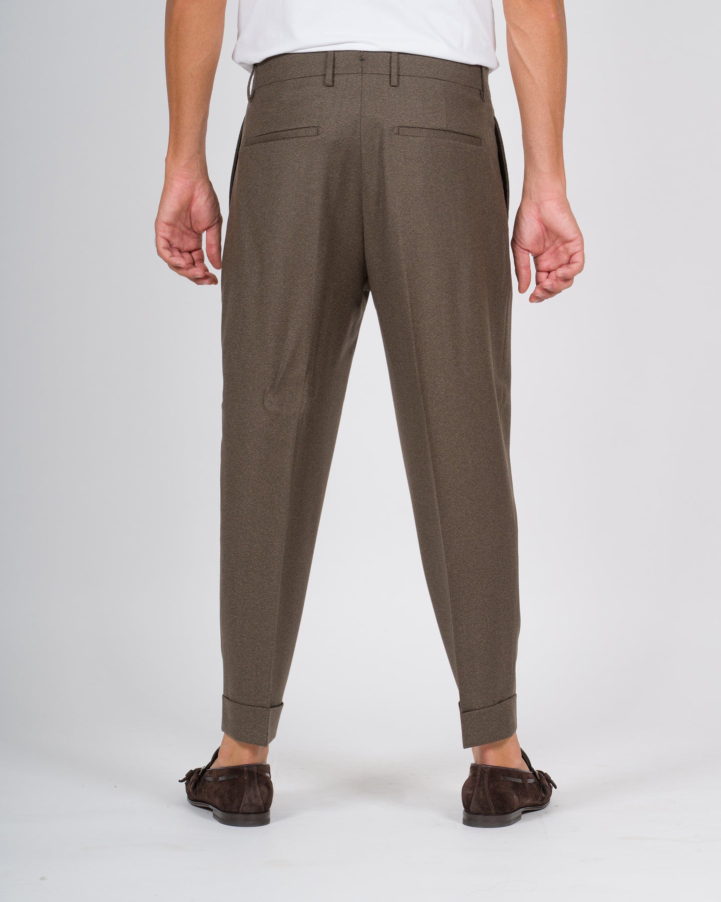 I pantaloni Berwich modello Chiaia, rappresentano un capo sartoriale di ispirazione napoletana, pensato per l'uomo che ricerca uno stile elegante e contemporaneo. Realizzati in pura lana.Il design con pence frontali singole, cintura a passanti e chiusura e chiusura con bottoni e zip sottolinea l'attenzione ai dettagli tipica del brand Berwich. La vestibilità regolare, leggermente affusolata sul fondo, garantisce comfort e proporzioni armoniose.Dettagli tecnici:Modello: ChiaiaTessuto: 100% lana Colore: marroneIl modello indossa la taglia 48 ed è alto 1.90.