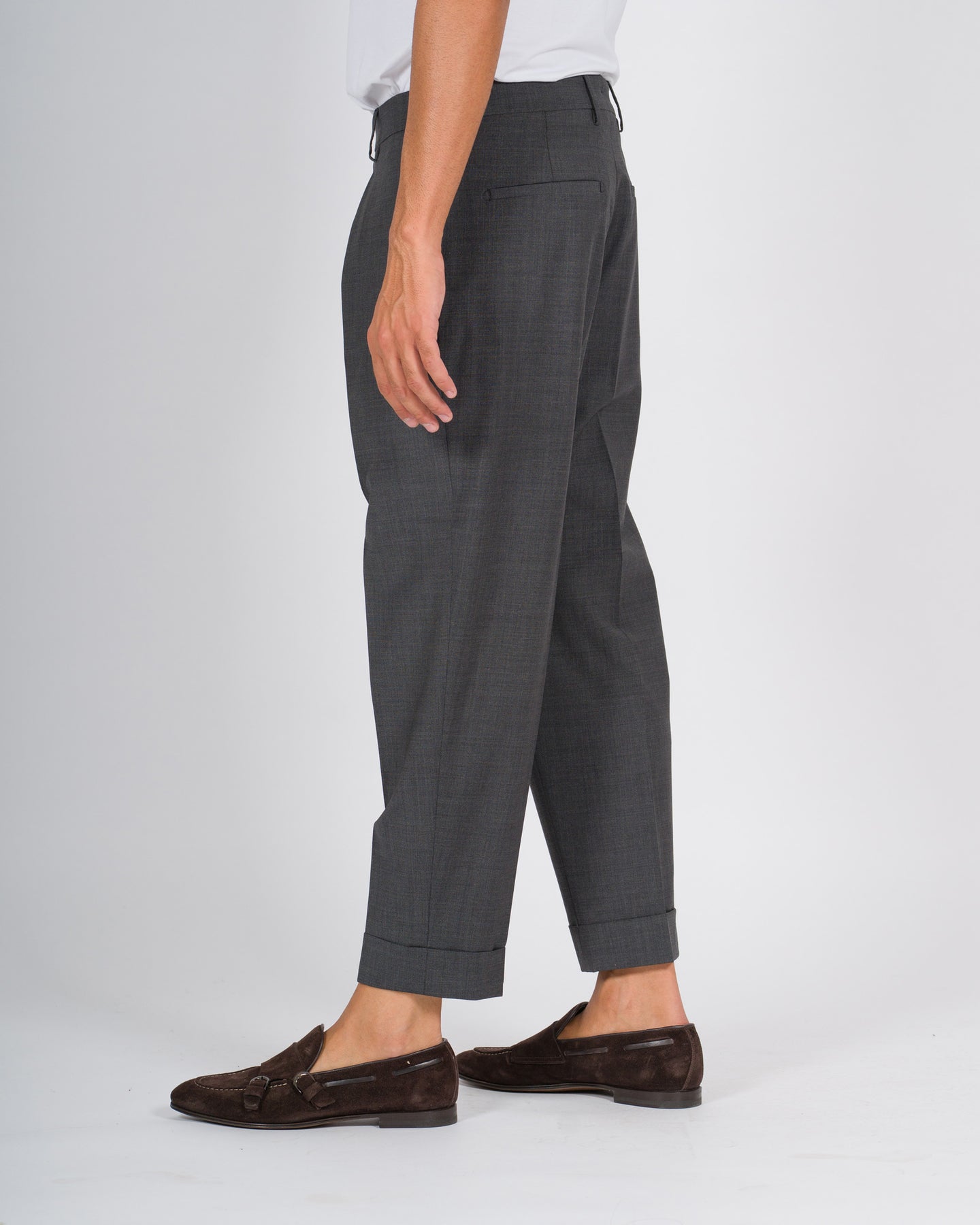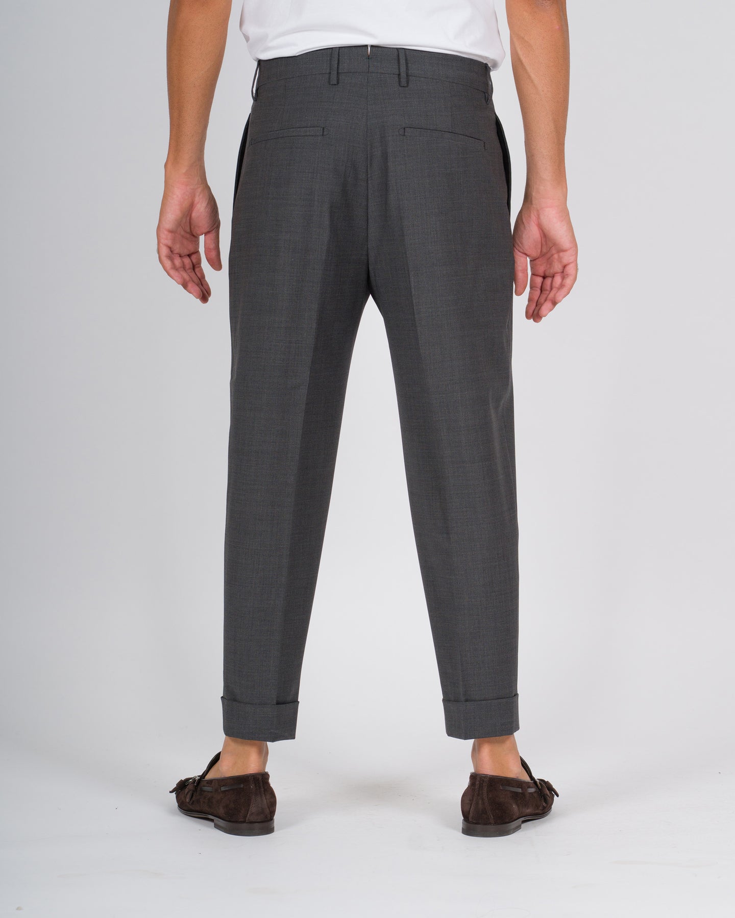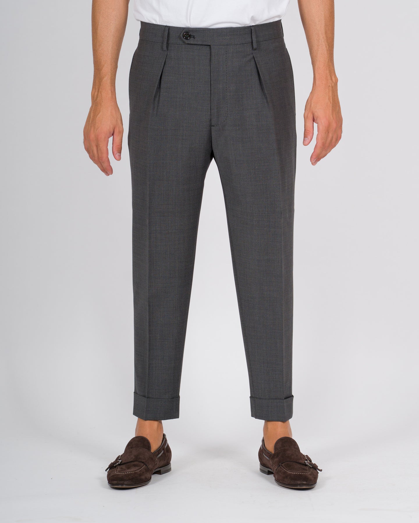 I pantaloni Berwich modello Chiaia, rappresentano un capo sartoriale di ispirazione napoletana, pensato per l'uomo che ricerca uno stile elegante e contemporaneo. Realizzati in pura lana four season.Il design con pence frontali singole, cintura a passanti e chiusura e chiusura con bottoni e zip sottolinea l'attenzione ai dettagli tipica del brand Berwich. La vestibilità regolare, leggermente affusolata sul fondo, garantisce comfort e proporzioni armoniose.Dettagli tecnici:Modello: ChiaiaTessuto: 100% lana four seasonColore: grigio scuroIl modello indossa la taglia 48 ed è alto 1.90.