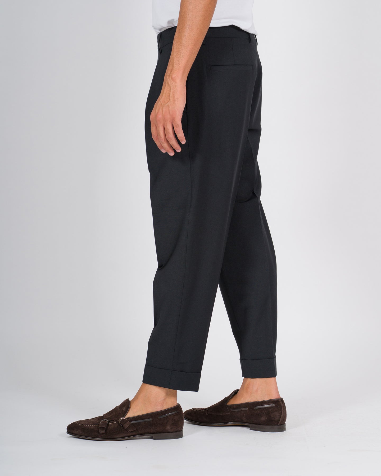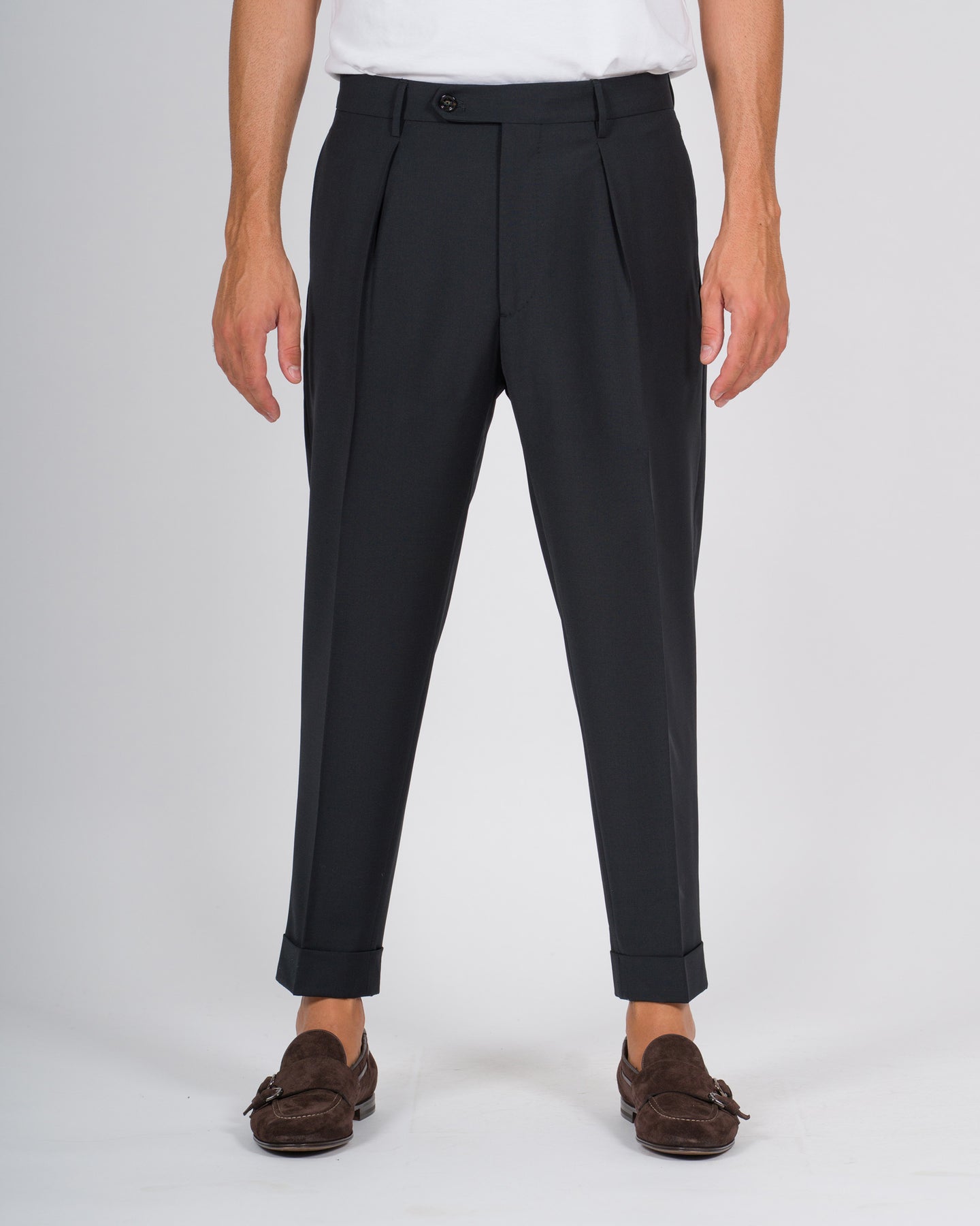 I pantaloni Berwich modello Chiaia, rappresentano un capo sartoriale di ispirazione napoletana, pensato per l'uomo che ricerca uno stile elegante e contemporaneo. Realizzati in pura lana four season.Il design con pence frontali singole, cintura a passanti e chiusura e chiusura con bottoni e zip sottolinea l'attenzione ai dettagli tipica del brand Berwich. La vestibilità regolare, leggermente affusolata sul fondo, garantisce comfort e proporzioni armoniose.Dettagli tecnici:Modello: ChiaiaTessuto: 100% lana four seasonColore: neroIl modello indossa la taglia 48 ed è alto 1.90.