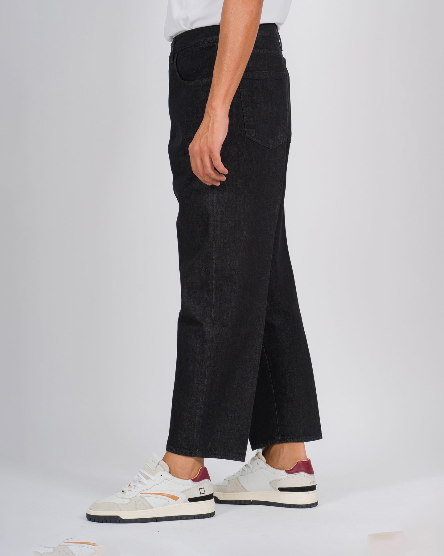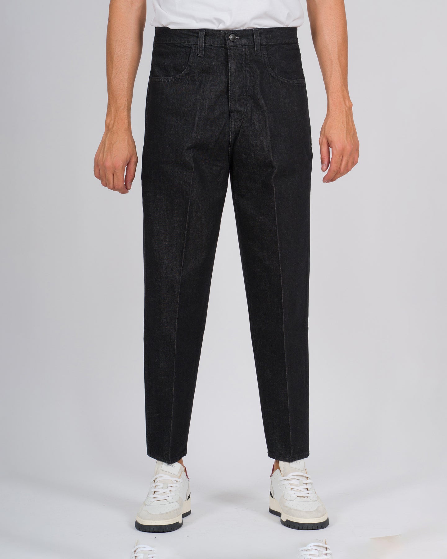 Minimalismo e carattere definiscono il modello Osaka di Bonheur nella versione in denim nero lavaggio zero. La linea moderna e pulita esprime un'estetica essenziale, ispirata alla filosofia giapponese fatta di equilibrio tra semplicità e raffinatezza.Il tessuto denim compatto e scuro dona al capo una presenza decisa e versatile, perfetta per completare look casual metropolitani o outfit più ricercati. La cura dei dettagli sartoriali e l'approccio contemporaneo rendono questi jeans un must-have per chi ama un'eleganza discreta ma distintiva.