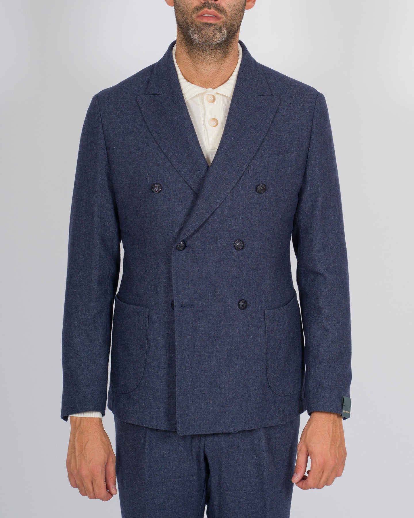 Raffinata e senza tempo, la giacca doppiopetto blu di Bottega Marchigiana è realizzata in pura lana e rifinita con l'eccellenza del made in Italy. Il taglio sartoriale valorizza la silhouette con linee pulite ed essenziali, mentre la costruzione doppiopetto dona un carattere deciso e contemporaneo.Il modello presenta rever classico, abbottonatura a sei bottoni, tasche a pattina e un pratico spacco posteriore, unendo eleganza e funzionalità. Un capo versatile, perfetto sia per occasioni formali che per look più disinvolti se abbinato a denim o maglieria.Pensata per chi ama i completi coordinati, la giacca può essere indossata con il pantalone dello stesso tessuto, per un outfit dall'impatto sofisticato e armonioso.