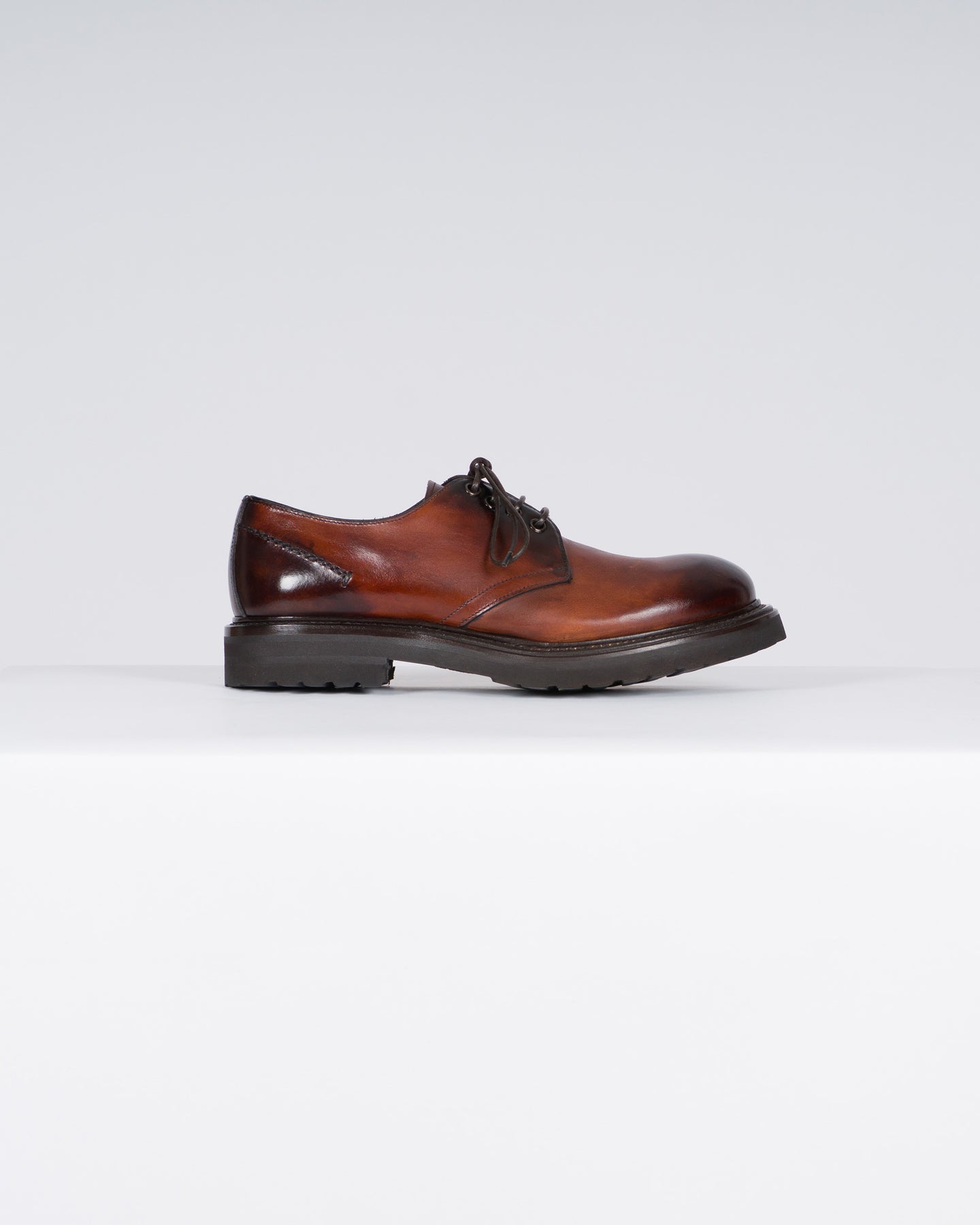 Eleganza artigianale e comfort contemporaneo si incontrano in questo modello firmato Claudio Marini, realizzato interamente in Italia. La tomaia in pelle spazzolata dona un effetto sofisticato di texture e movimento, mentre la punta tonda conferisce una linea versatile adatta sia al look formale che casual-chic. L'allacciatura classica con lacci assicura una vestibilità regolabile, e la suola in gomma stilizzata offre leggerezza, grip e un tocco moderno all'insieme.
