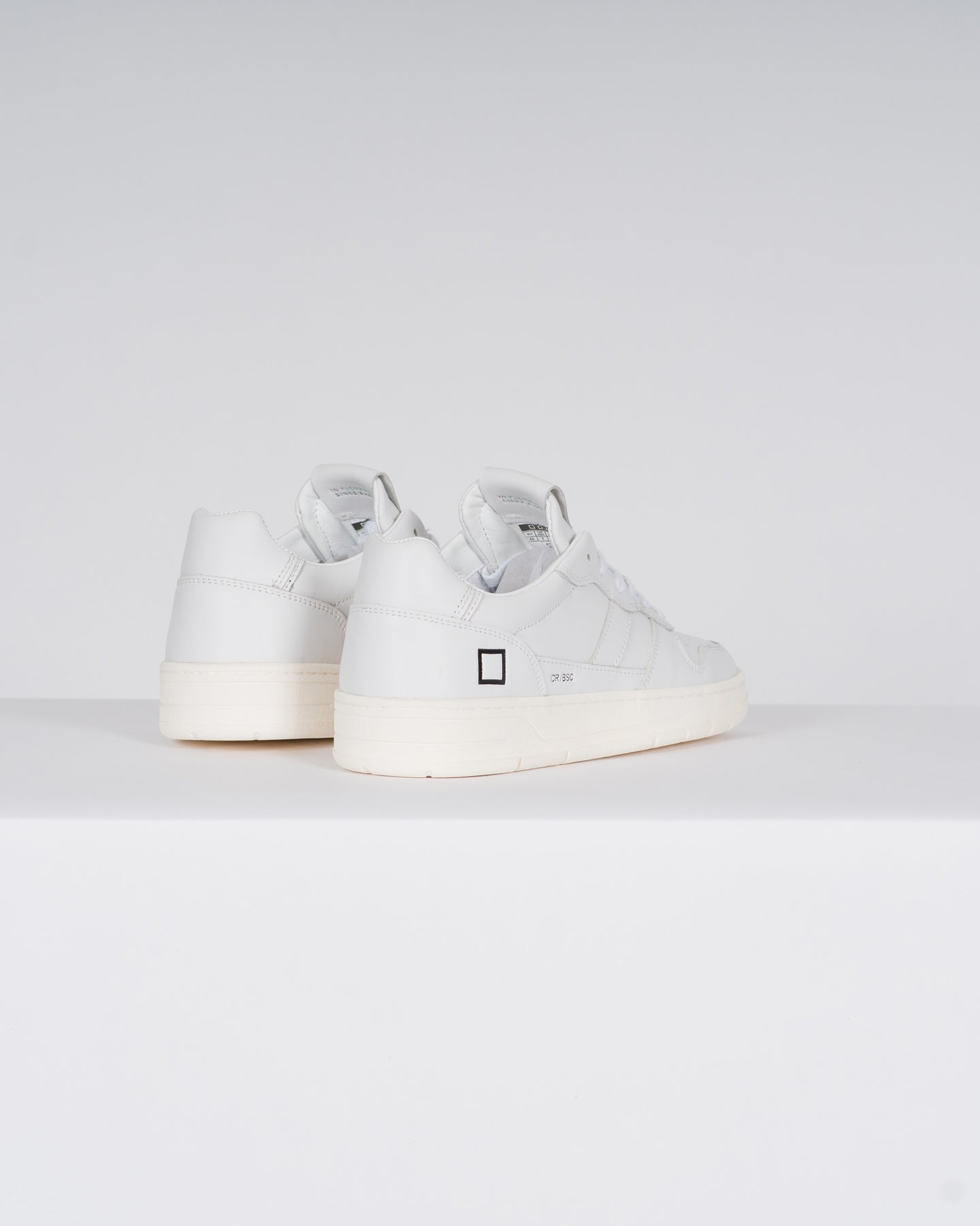 Le sneakers Court Mono White di D.A.T.E. combinano un'estetica p di alta qualità, offrendo comfort e stile in ogni passo.Caratteristiche principali:Materiale: pelle bianca con effetto usato, per un look vintage e sofisticato.Dettagli: suede sul tallone, linguetta con logo impresso e perforazioni sulla punta per una maggiore traspirabilità.Logo: logo quadrato inciso lateralmente e codice inciso sul lato.Fodera: interno in pelle e cotone spugna per un comfort ottimale.Soletta: suola rialzata di 2,5 cm per un supporto extra.Suola: suola in gomma leggermente macchiata con effetto usato, altezza 2,5-3 cm.Finitura: tutti i materiali sono realizzati in Italia. Design:Colore: bianco monocromatico con dettagli in pelle.Stile: bassa, con un'estetica ispirata al tennis, perfetta per un look casual-chic. Fit:Vestibilità regolare, adatta a chi cerca una scarpa comoda e alla moda.Cura:Pulire la pelle liscia o testurizzata con un panno morbido e umido.Per le parti in suede, utilizzare una spazzola morbida asciutta per rimuovere lo sporco.ulita e contemporanea con materiali.