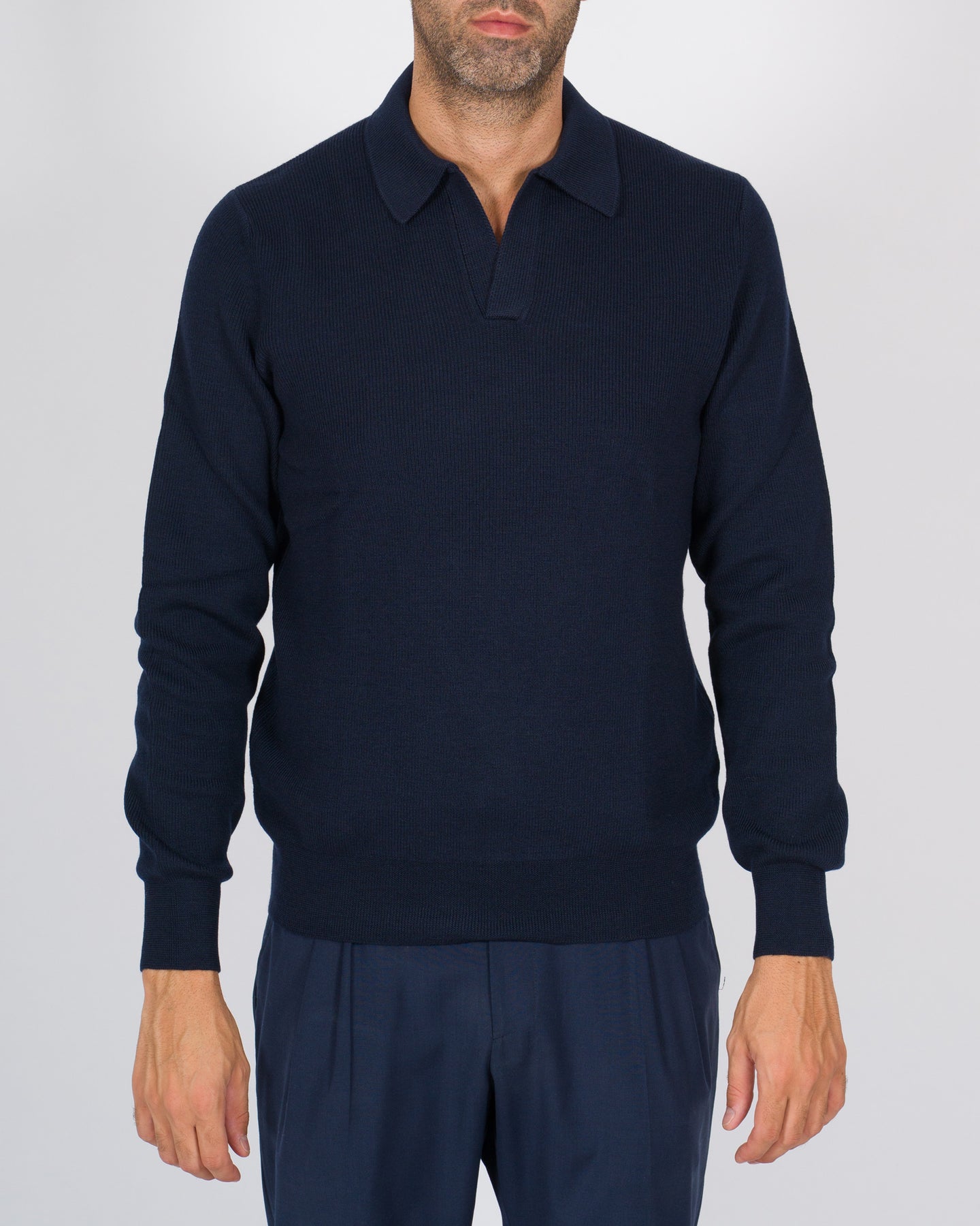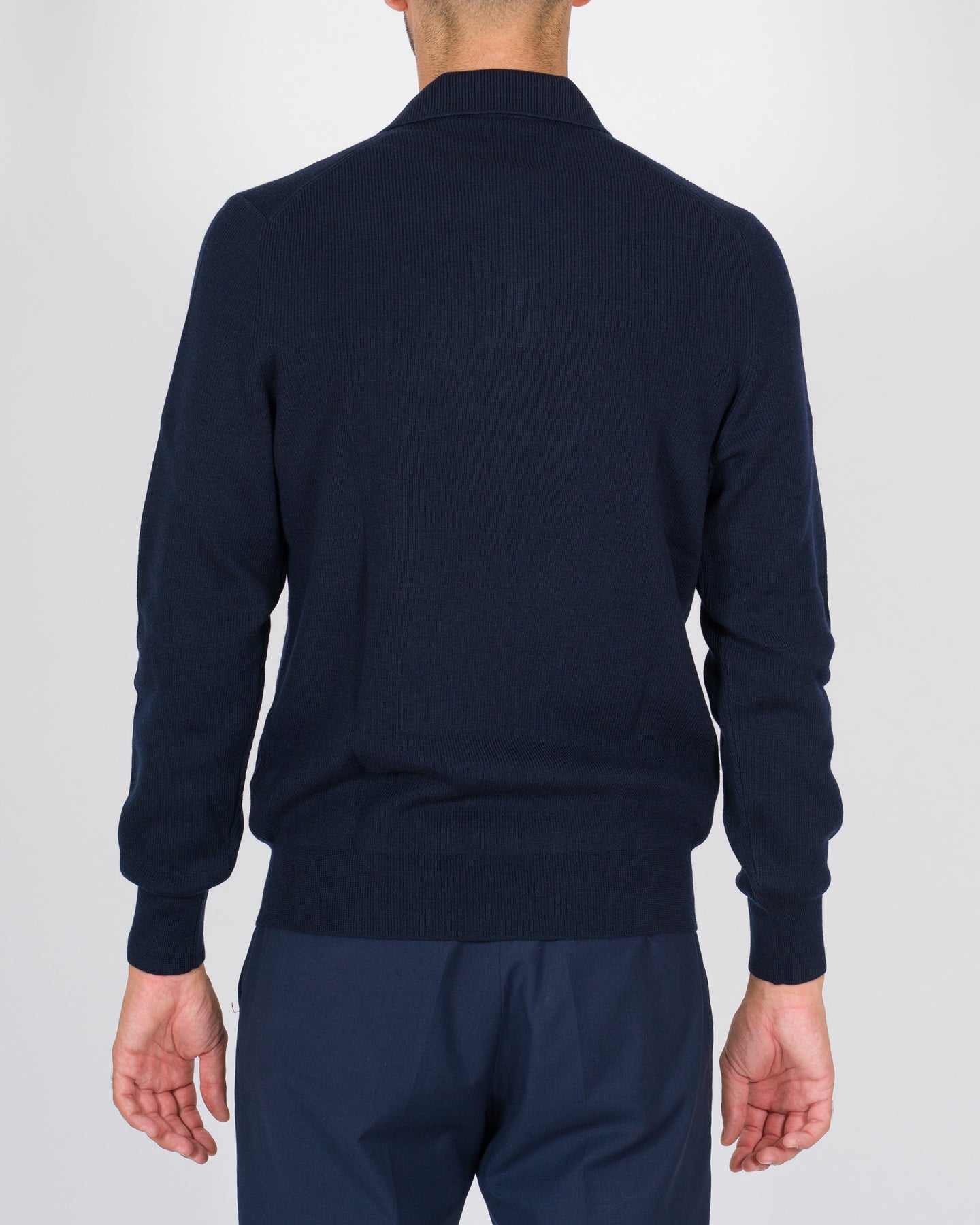 Questa polo della linea La Fileria unisce eleganza e comfort in un capo versatile per il guardaroba maschile. Realizzata in morbida lana con lavorazione a coste, presenta il collo Skipper, che aggiunge un dettaglio distintivo e raffinato. Il colore blu intenso rende la polo facile da abbinare, ideale sia per look casual-chic sia per stratificazioni eleganti durante le stagioni più fresche.Dettagli:Colore: bluLinea: La FileriaCollo SkipperTessuto: lana a costeManiche lungheVestibilità regolareComposizione:100% lana Made in Italy Lavare a mano o a secco delicato