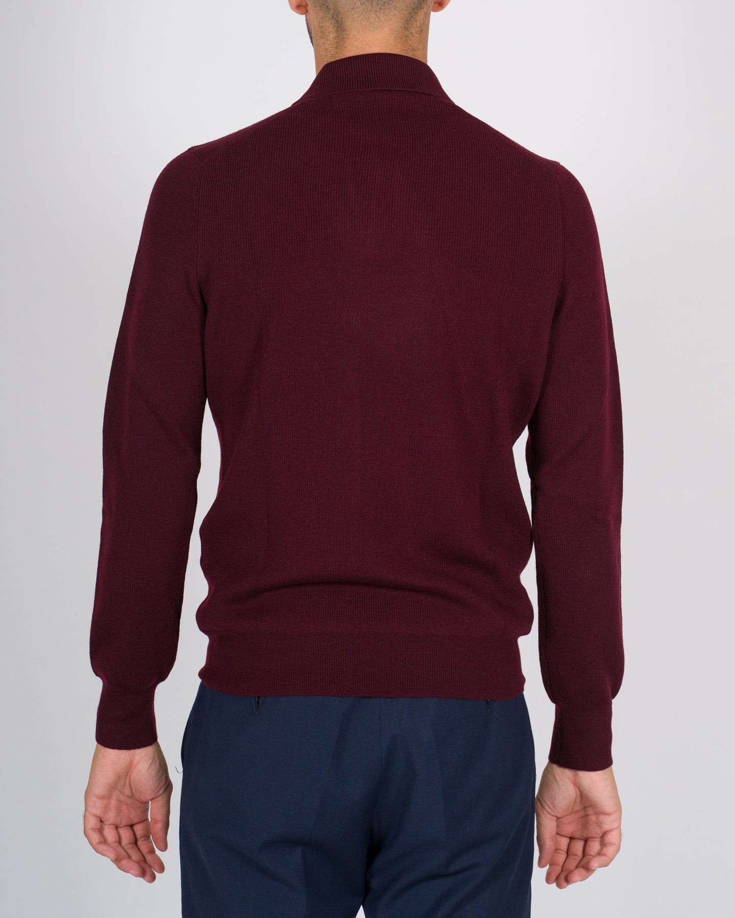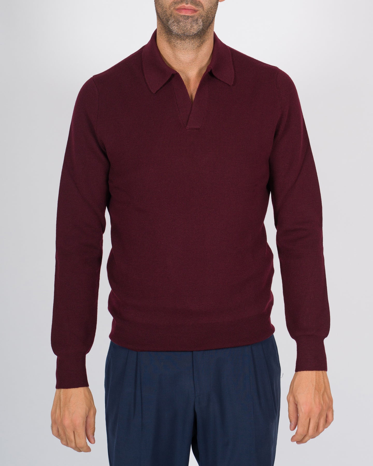 Questa polo della linea La Fileria unisce eleganza e comfort in un capo versatile per il guardaroba maschile. Realizzata in morbida lana con lavorazione a coste, presenta il collo Skipper, che aggiunge un dettaglio distintivo e raffinato. Il colore bordeaux intenso rende la polo facile da abbinare, ideale sia per look casual-chic sia per stratificazioni eleganti durante le stagioni più fresche.Dettagli:Colore: bordeauxLinea: La FileriaCollo SkipperTessuto: lana a costeManiche lungheVestibilità regolareComposizione:100% lana Made in Italy Lavare a mano o a secco delicato