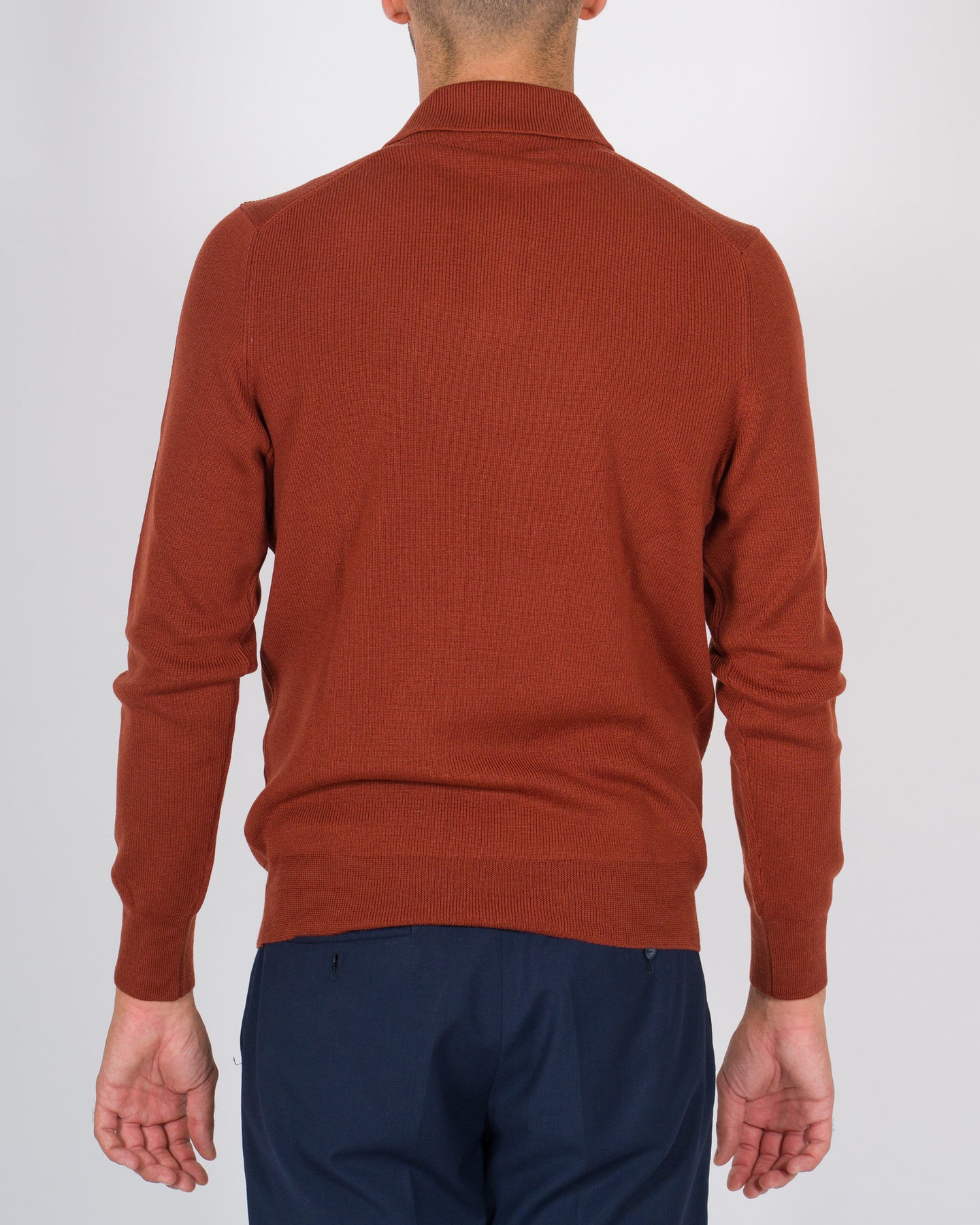 Questa polo della linea La Fileria unisce eleganza e comfort in un capo versatile per il guardaroba maschile. Realizzata in morbida lana con lavorazione a coste, presenta il collo Skipper, che aggiunge un dettaglio distintivo e raffinato. Il colore coccio intenso rende la polo facile da abbinare, ideale sia per look casual-chic sia per stratificazioni eleganti durante le stagioni più fresche.Dettagli:Colore: coccioLinea: La FileriaCollo SkipperTessuto: lana a costeManiche lungheVestibilità regolareComposizione:100% lana Made in Italy Lavare a mano o a secco delicato