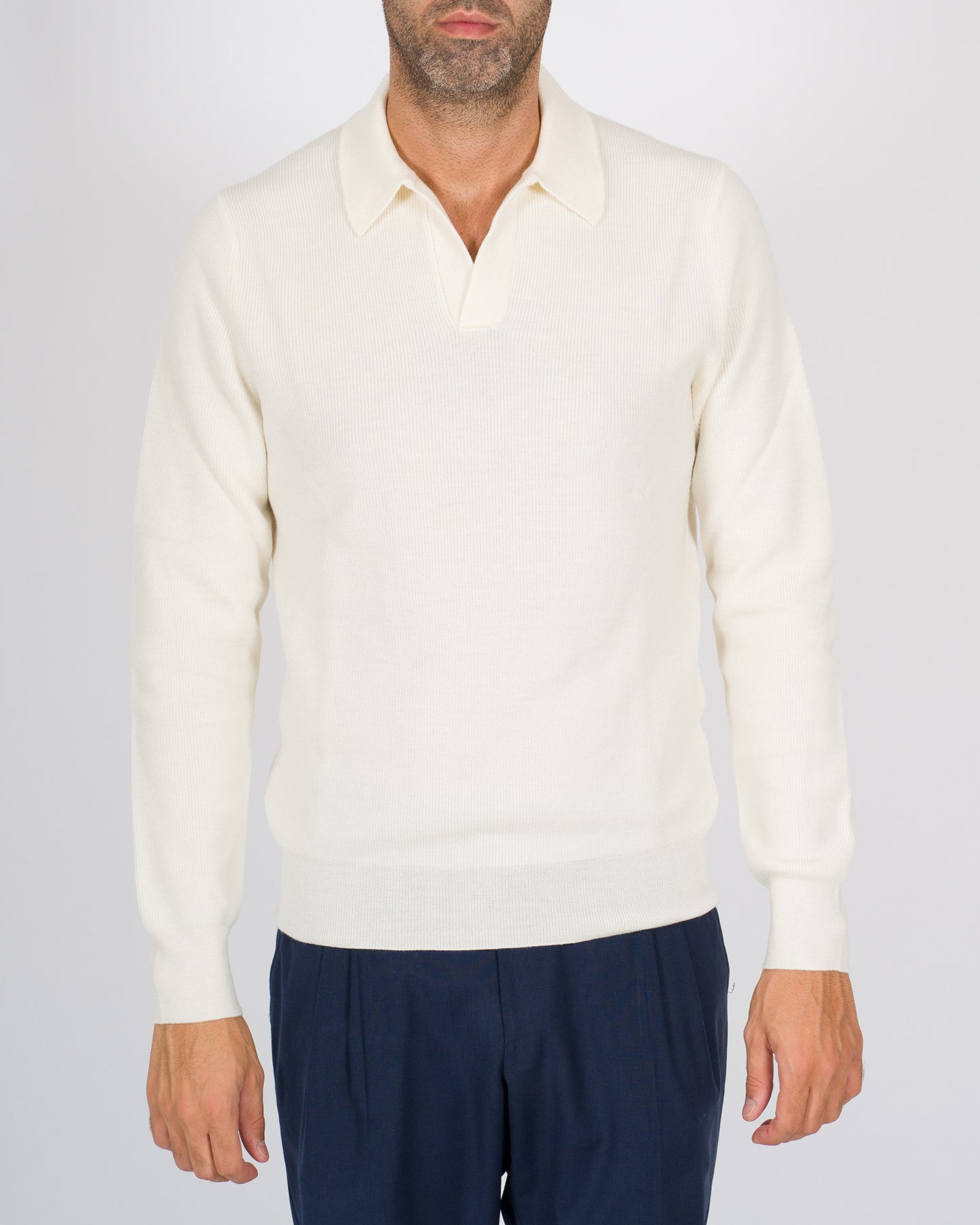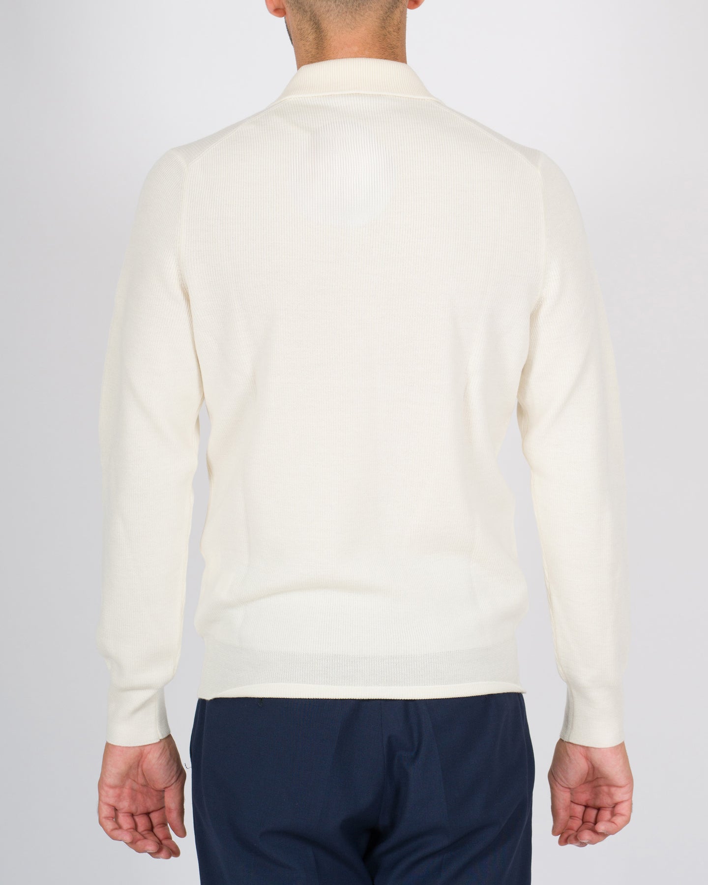 Questa polo della linea La Fileria unisce eleganza e comfort in un capo versatile per il guardaroba maschile. Realizzata in morbida lana con lavorazione a coste, presenta il collo Skipper, che aggiunge un dettaglio distintivo e raffinato. Il colore panna intenso rende la polo facile da abbinare, ideale sia per look casual-chic sia per stratificazioni eleganti durante le stagioni più fresche.Dettagli:Colore: pannaLinea: La FileriaCollo SkipperTessuto: lana a costeManiche lungheVestibilità regolareComposizione:100% lana Made in Italy Lavare a mano o a secco delicato