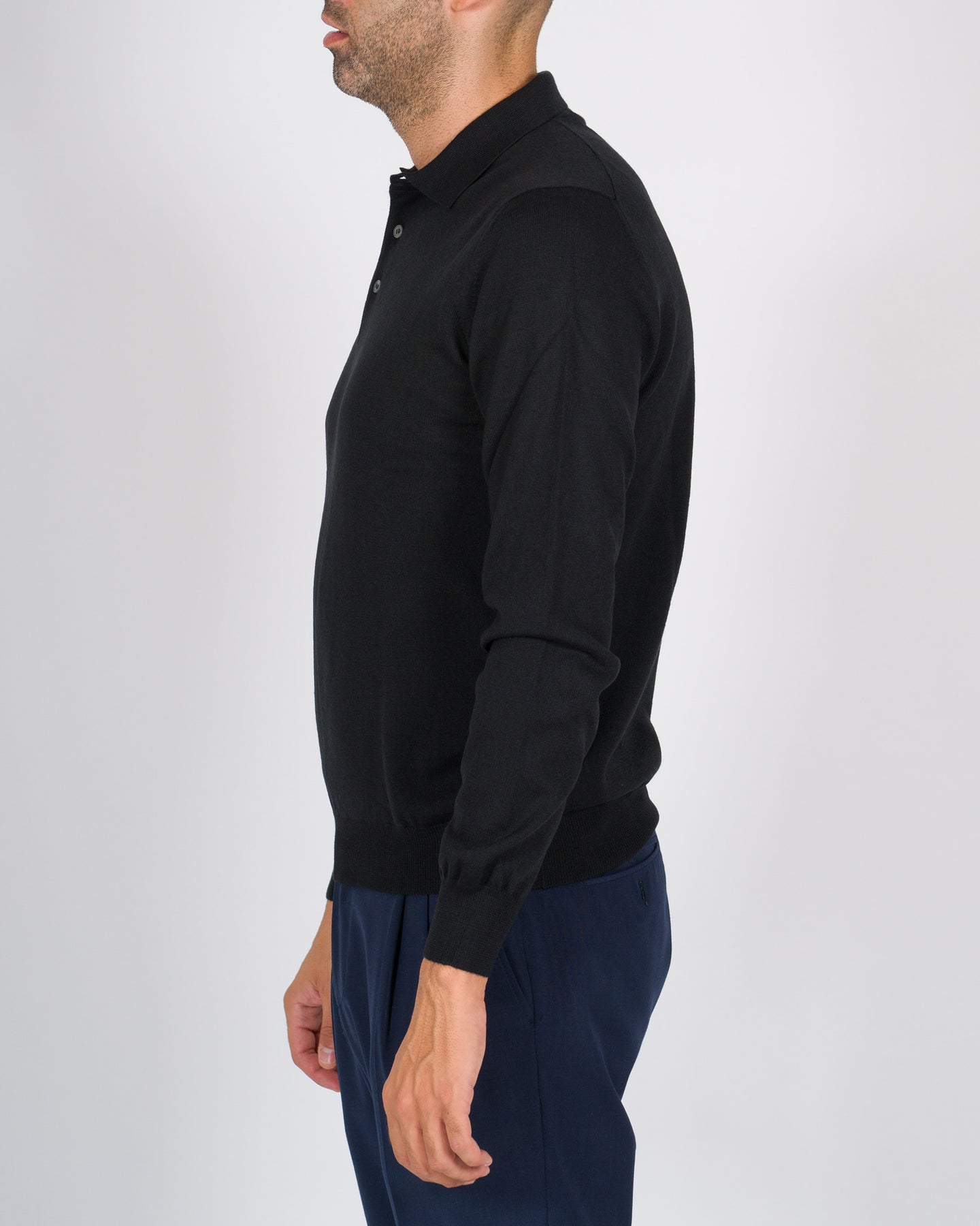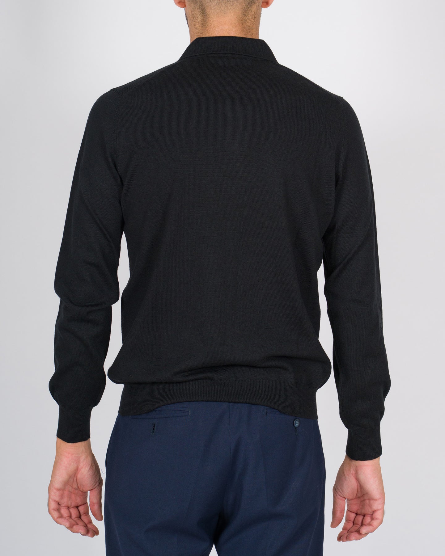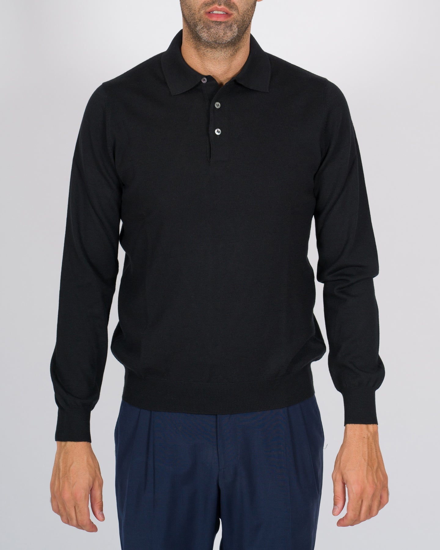 Questa polo a manica lunga della linea La Fileria combina eleganza e comfort in un capo raffinato. Realizzata in morbida lana di finezza 12, si distingue per il colore nero intenso e per la chiusura frontale con tre bottoni, che aggiunge un dettaglio classico e funzionale. La vestibilità regolare e il tessuto pregiato rendono questa polo perfetta per look casual-chic o per stratificazioni eleganti durante la stagione fredda.Dettagli:Colore: neraLinea: La FileriaManiche lungheChiusura frontale con tre bottoniFinezza lana: 12Vestibilità regolareComposizione:Tessuto: 100% lanaMade in Italy Lavare a mano o a secco delicato