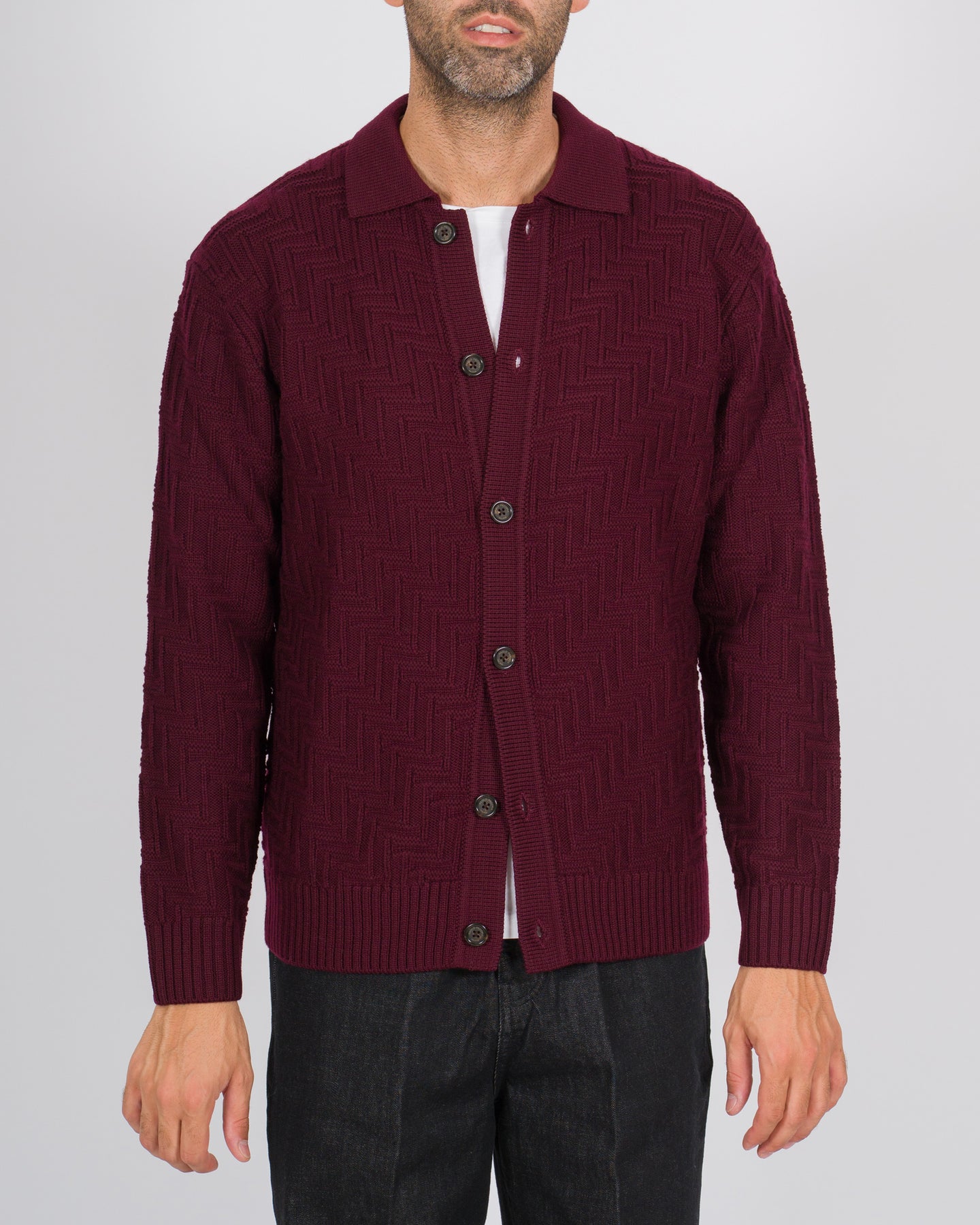 Un capo che combina comfort e ricercatezza, espressione della tradizione sartoriale milanese firmata Paolo Pecora. Questo cardigan a maniche lunghe è realizzato in lana merinos extrafine, rinomata per morbidezza e capacità termoregolatrice, qui valorizzata da una lavorazione a rilievo che aggiunge texture e personalità al design.Il modello si distingue per il collo a camicia, la chiusura frontale a bottoni e la vestibilità versatile, pensata per adattarsi a look casual raffinati come a combinazioni più eleganti. Indossato sopra una t-shirt minimal per il giorno o abbinato a una camicia per la sera, diventa un alleato sofisticato del guardaroba maschile contemporaneo.