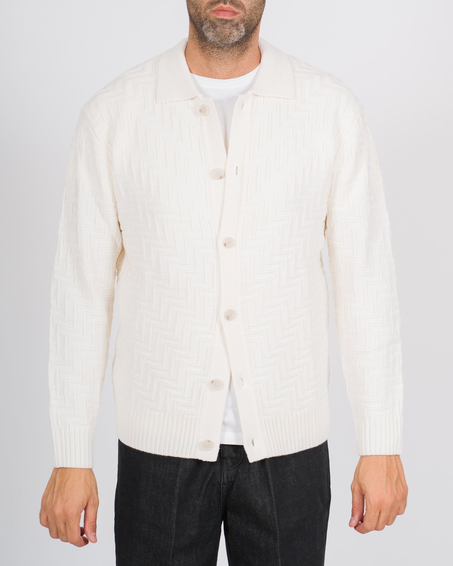Cardigan con collo a camicia e lavorazione a rilievo latte
