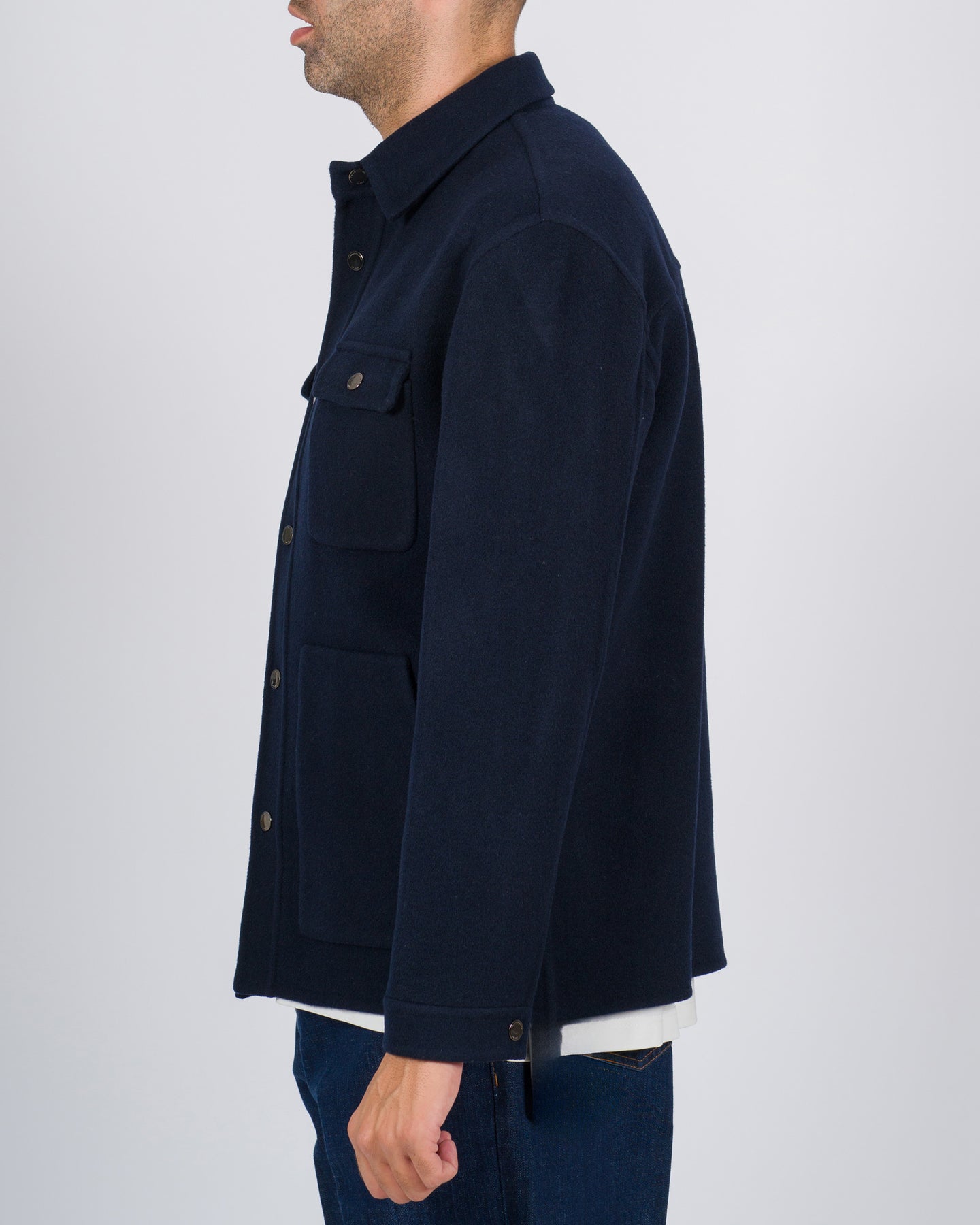 Un'eleganza rilassata che incontra la sartorialità italiana: questa overshirt firmata Paolo Pecora è realizzata in pura lana, lavorata con attenzione per garantire comfort e struttura al tempo stesso. Il design richiama le camicie utility, ma si eleva grazie alla mano morbida del tessuto e a un taglio versatile, perfetto come strato intermedio o come giacca leggera.Il modello presenta collo a camicia classico, tasche a toppa applicate sul petto e una chiusura frontale con bottoni a pressione che aggiunge praticità e un tocco contemporaneo. Le linee sono pulite e leggermente morbide, pensate per accompagnare il movimento con naturalezza, senza rinunciare a un'allure sofisticata.