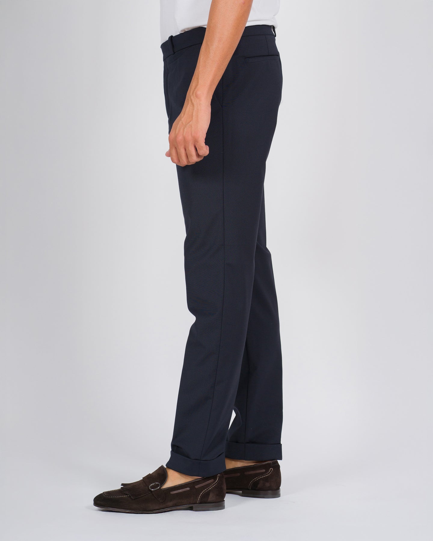 Sintesi perfetta di eleganza disinvolta e funzionalità quotidiana, il chino invernale dal fit regolare è realizzato in esclusivo tessuto stretch SURFLEX® antipiega, no stiro e caratterizzato da una mano straordinariamente liscia. La finitura super opaca esalta la palette di tonalità sobrie e raffinate, perfette per accompagnare con stile la stagione fredda. Il modello a vita media è arricchito da dettagli sartoriali come la cintura con passanti, chiusa da un bottone in corno naturale. È dotata di coulisse interna ed elastico per un comfort personalizzato. L'interno svela la stampa dell'iconico Monogram Razzle Dazzle in nero. La zip frontale è nascosta dalla pattina, mentre le tasche alla francese - con pratico tiretto elastico sul lato destro - si affiancano alle posteriori a filo. Il logo nero a microiniezione firma il capo con una nota di stile distintivo. Versatile e raffinato, questo chino continuativo si presta perfettamente a un abbinamento con blazer coordinato e camicia Oxford per un outfit adatto all'occasione professionale, o a una maglia della Collezione per un look smart casual ricercato.