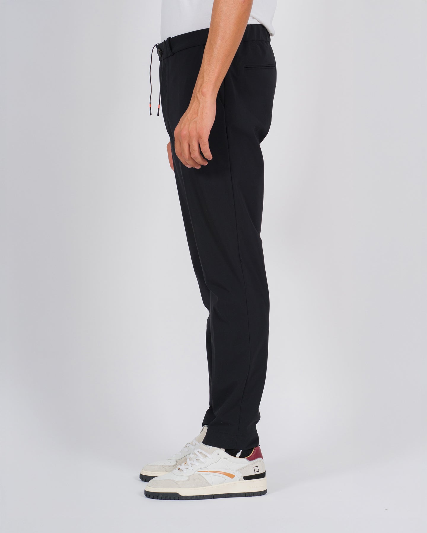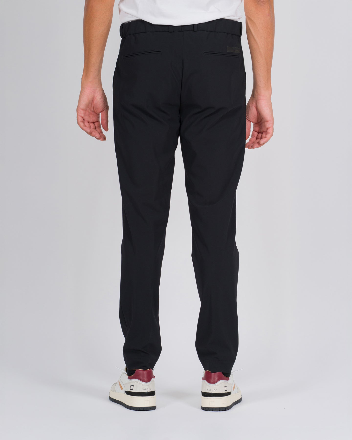 Sintesi perfetta di eleganza disinvolta e funzionalità quotidiana, il chino invernale dal fit regolare è realizzato in esclusivo tessuto stretch SURFLEX® antipiega, no stiro e caratterizzato da una mano straordinariamente liscia. La finitura super opaca esalta la palette di tonalità sobrie e raffinate, perfette per accompagnare con stile la stagione fredda. Il modello a vita media è arricchito da dettagli sartoriali come la cintura con passanti, chiusa da un bottone in corno naturale. È dotata di coulisse interna ed elastico per un comfort personalizzato. L'interno svela la stampa dell'iconico Monogram Razzle Dazzle in nero. La zip frontale è nascosta dalla pattina, mentre le tasche alla francese - con pratico tiretto elastico sul lato destro - si affiancano alle posteriori a filo. Il logo nero a microiniezione firma il capo con una nota di stile distintivo. Versatile e raffinato, questo chino continuativo si presta perfettamente a un abbinamento con blazer coordinato e camicia Oxford per un outfit adatto all'occasione professionale, o a una maglia della Collezione per un look smart casual ricercato.