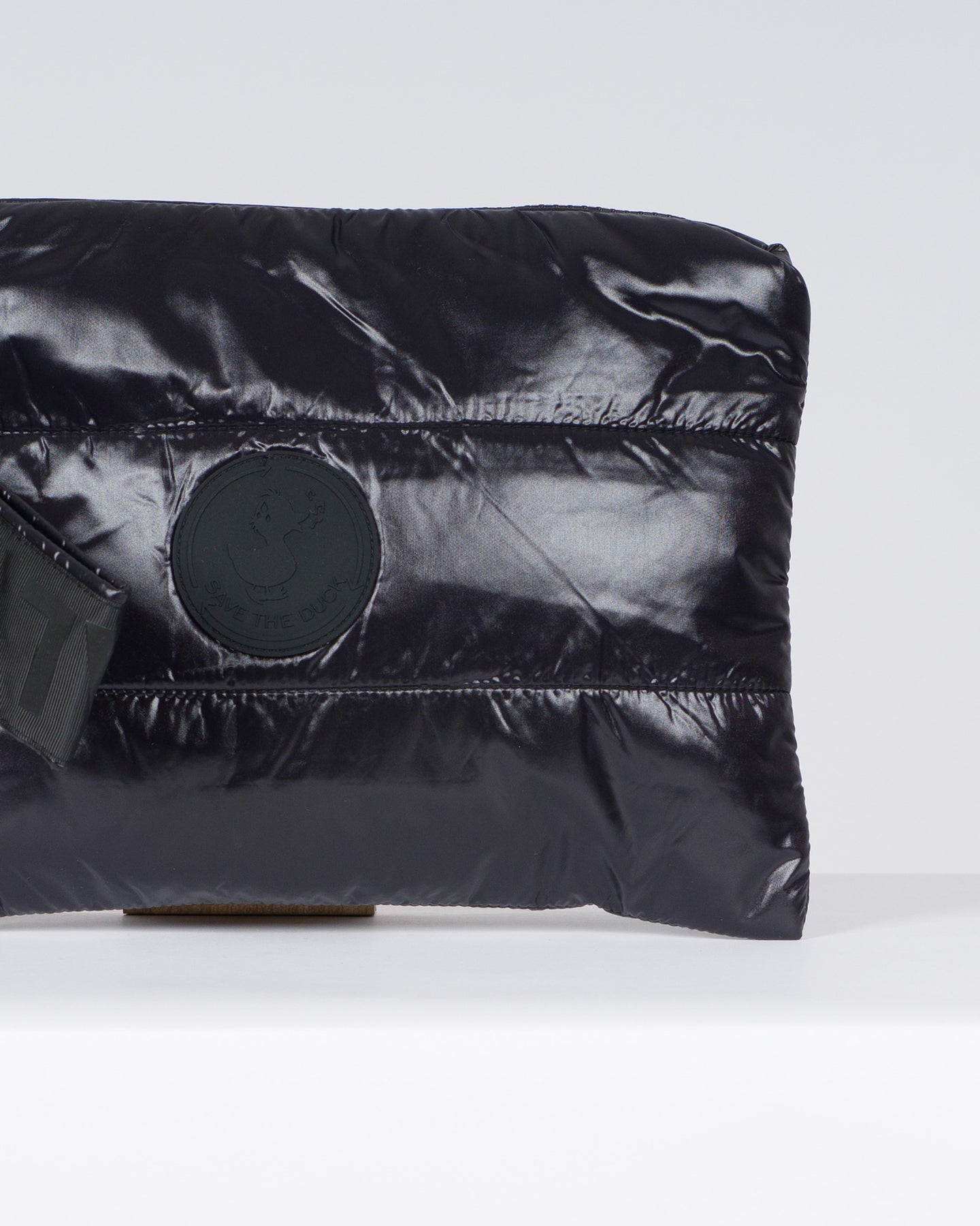 Realizzata in nylon laqué, la pochette trapuntata modello Cocos presenta un pratico manico in grosgrain con stampa ANIMAL FREE. Rettangolare e compatta, è perfetta per riporre piccoli oggetti di uso quotidiano grazie alle tasche interne. La zip con tiretto personalizzato e il logo rotondo color nero completano la pouch in perfetto stile Save The Duck.