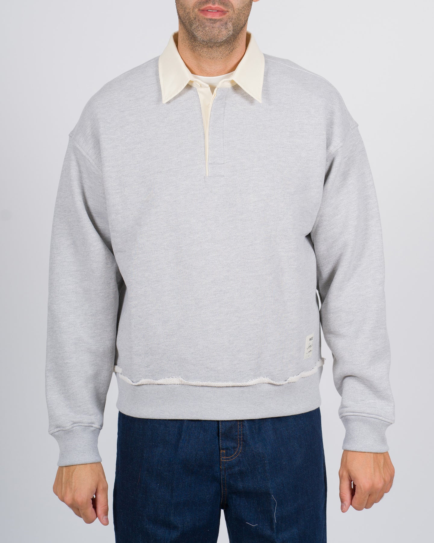 La polo maschile panna della linea WOC in tessuto jersey garzato è un capo versatile e contemporaneo, realizzato in materiale morbido e leggermente strutturato che garantisce comfort e calore, con collo in tessuto coordinato che valorizza il design minimalista, rifiniture a taglio vivo sui bordi e sulle maniche che conferiscono un tocco moderno e casual, linea leggermente relaxed ideale da indossare da sola o sopra t-shirt leggere e colore panna elegante che si abbina facilmente a jeans, pantaloni o chino, incarnando uno stile urbano, minimal e funzionale.