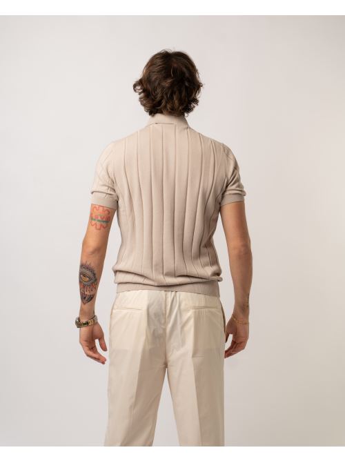 Polo mezza mancica con bottoni in tessuto filo di cotone con lavorazione a costa colore beige