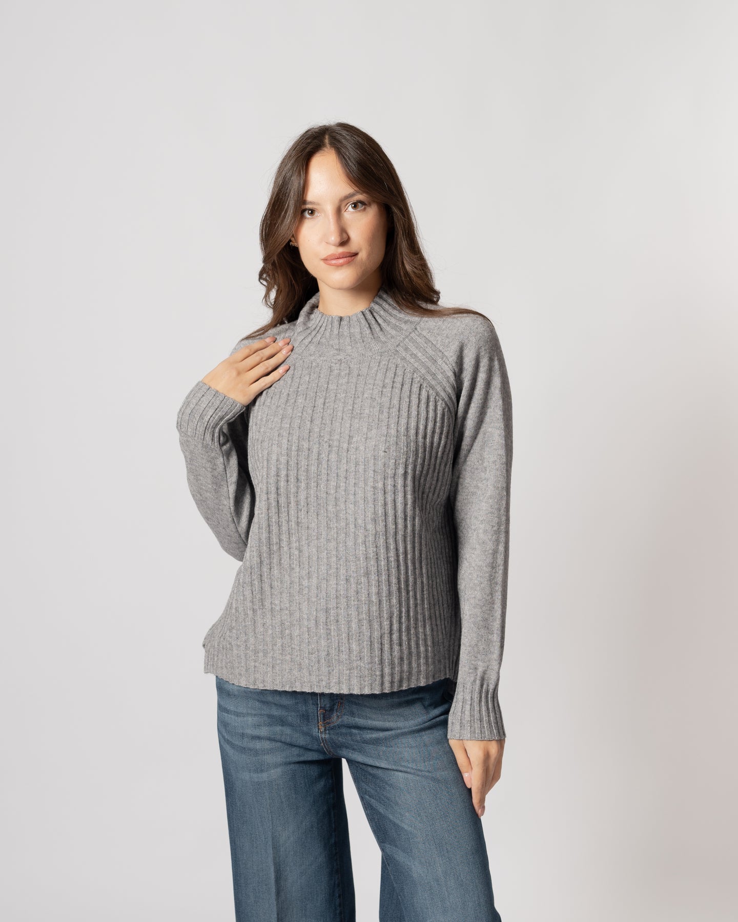 Maglia cratere manica lunga in tessuto viscosa con lavorazione a coste.