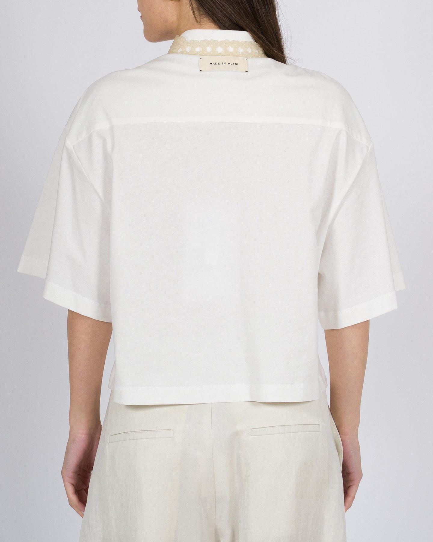 Dettagli raffinati, linee pulite, stile contemporaneo.La polo ALYSI con collo impreziosito da perline unisce una vestibilità confortevole a dettagli eleganti, per un look minimal e sofisticato, perfetto da abbinare a pantaloni o bermuda.Un capo versatile che coniuga charme discreto e modernità.