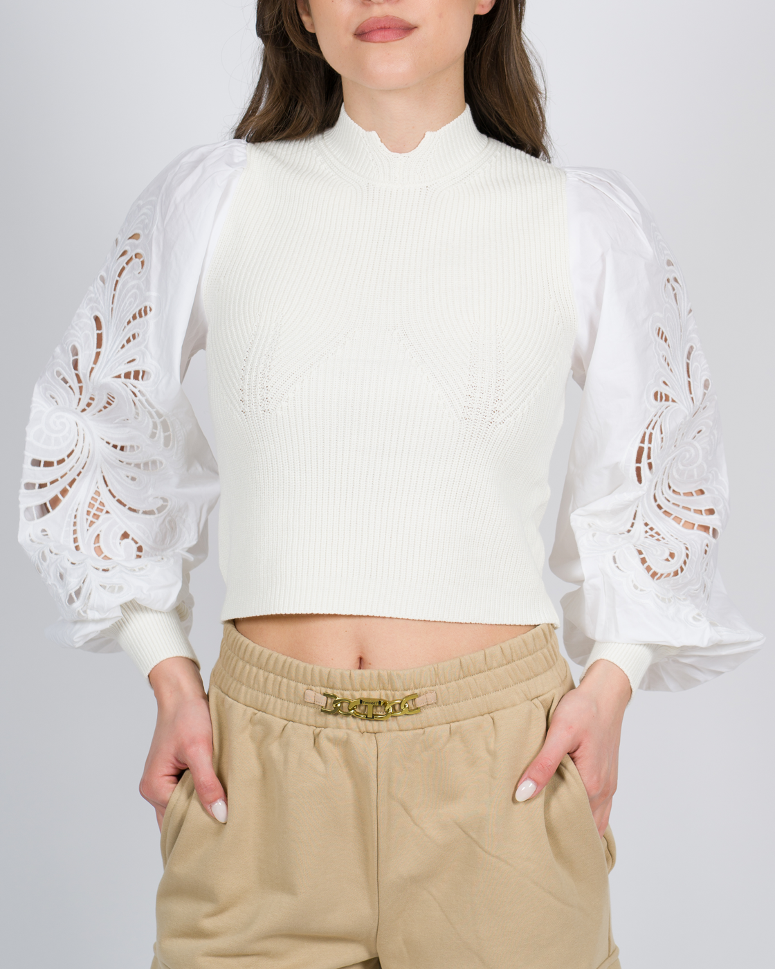 Maglia lupetto con maniche ricamate bianca