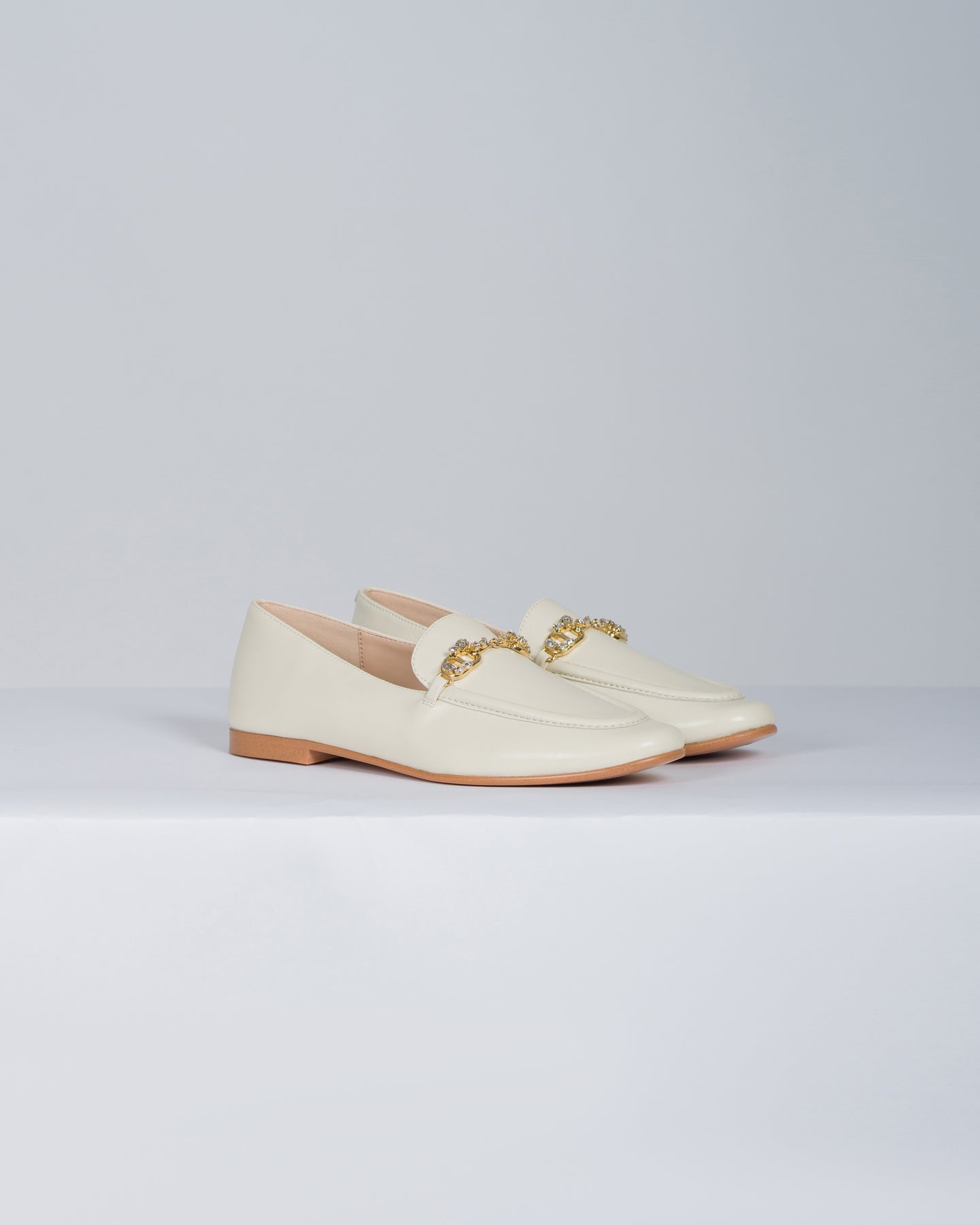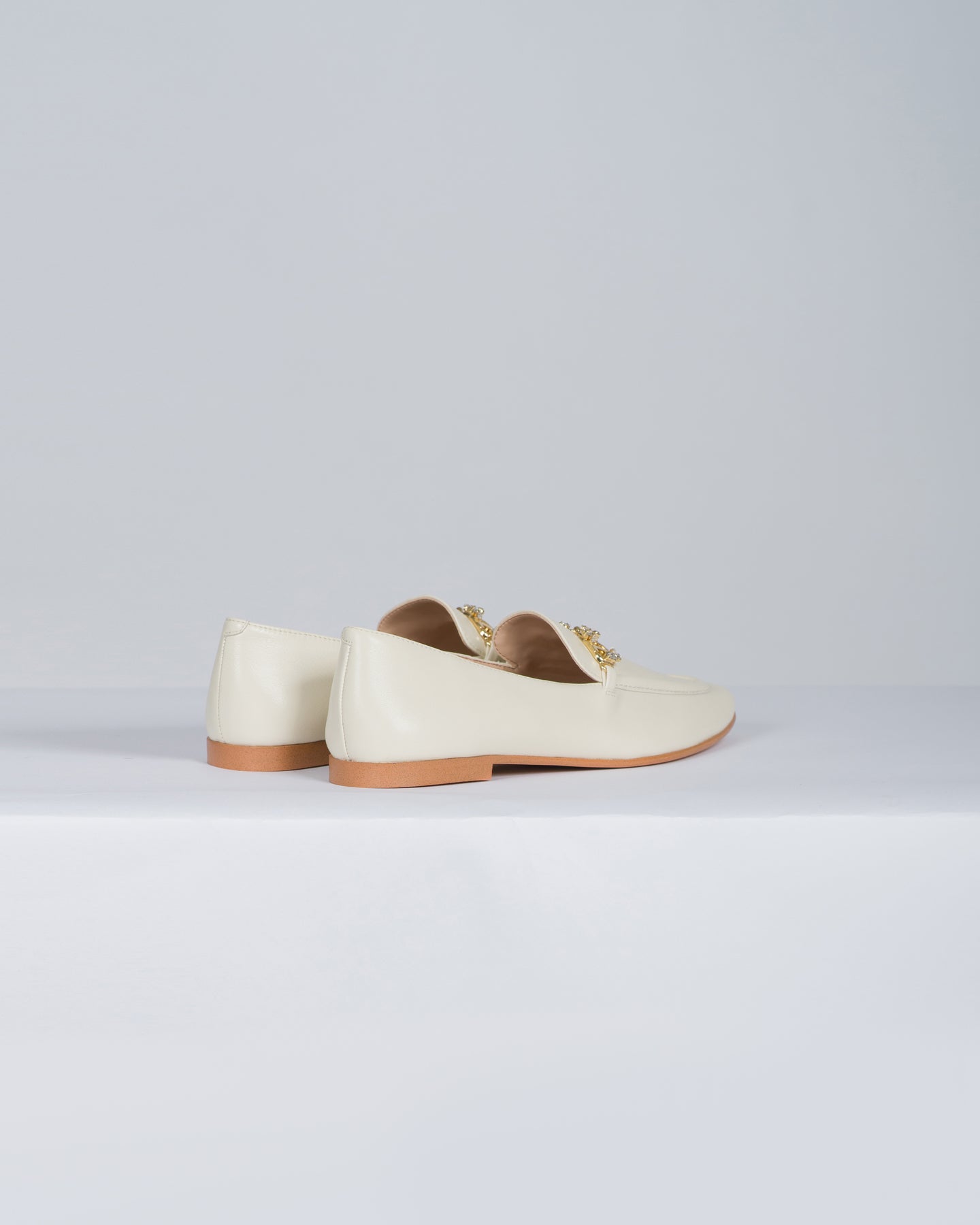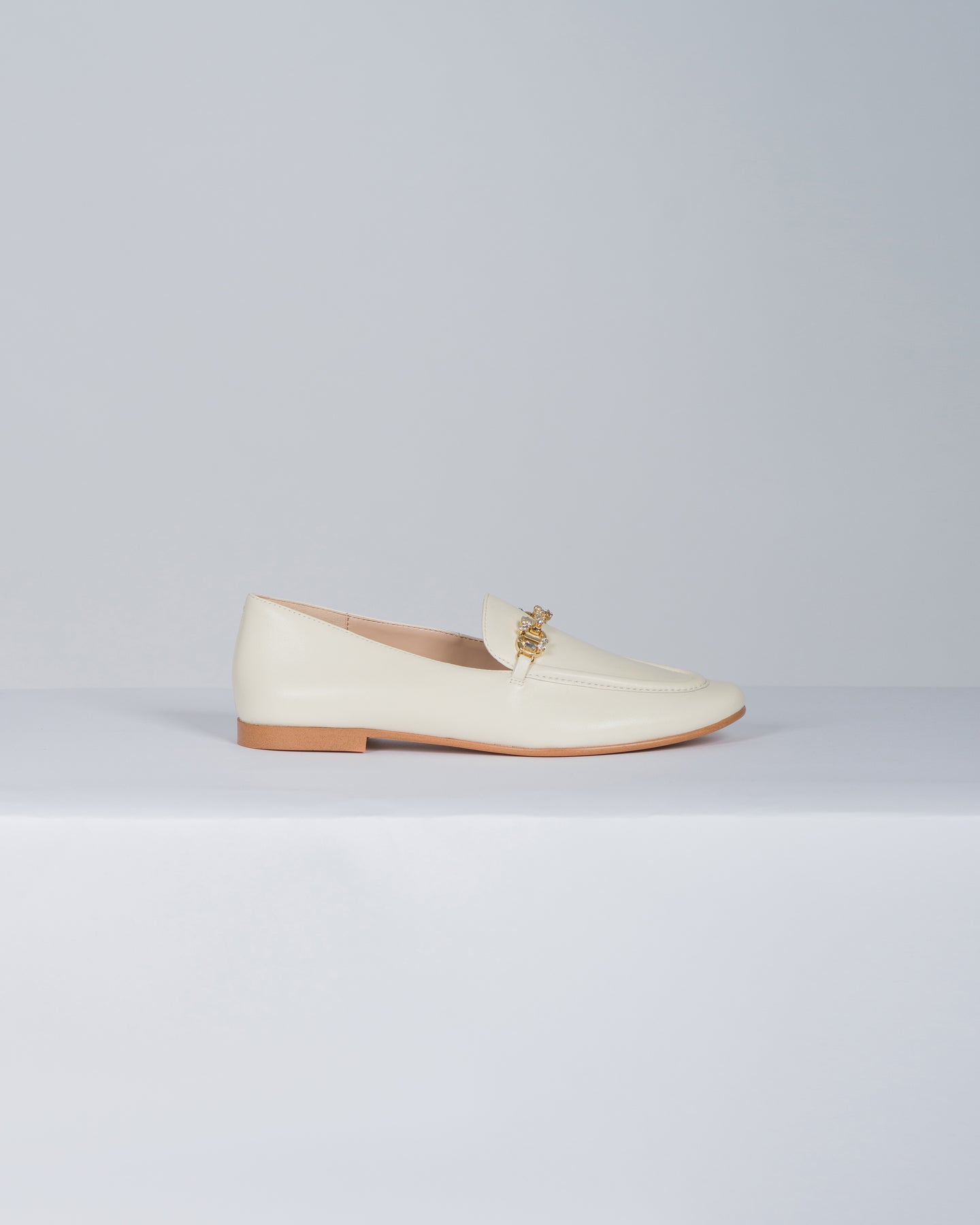 Mocassini in pelle con Oval T strass panna