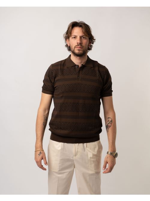 Polo mezza manica tre bottoni in tessuto cotone colore marrone con lavorazione rambi.