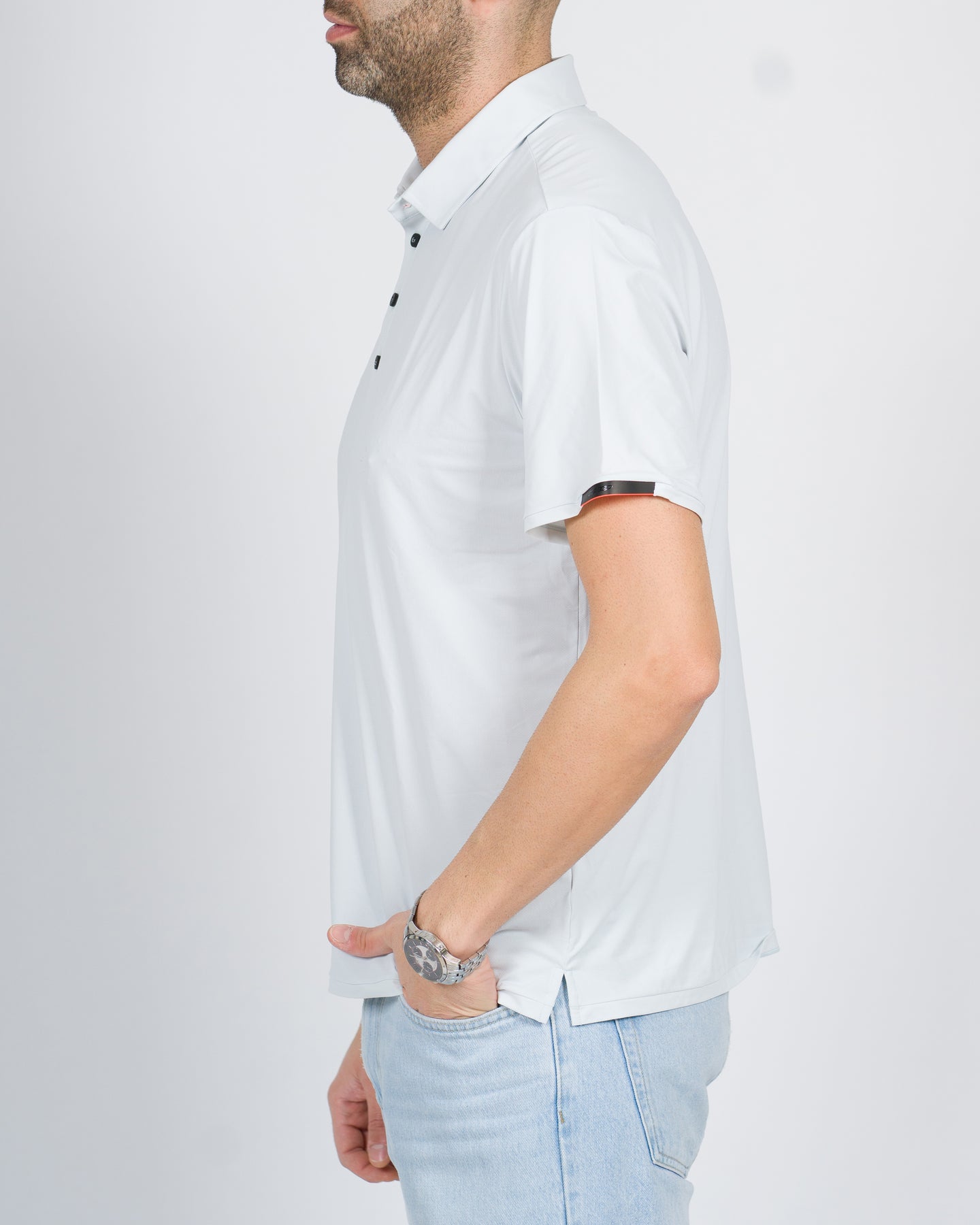 La modernità della costruzione e l'eleganza classica si fondono armoniosamente in questa polo monocroma, realizzata in finissimo Oxford elasticizzato. Il modello dal fit regolare si distingue per gli studiati dettagli vintage come il colletto a camicia, chiuso da quattro bottoncini soft touch. Il comfort del fit regolare segue i movimenti del corpo con naturalezza ed è enfatizzato dalla leggerezza e dalla freschezza all'indosso, che si sommano alle qualità antipiega, no stiro e quick drying. Disponibile in una palette di colori di tendenza, la polo si distingue per le note iconiche del tape nero con logo RRD sull'orlo della manica sinistra. Un capo indispensabile nel guardaroba maschile della stagione calda, per completare qualsiasi look casual estivo con classe e sicurezza.