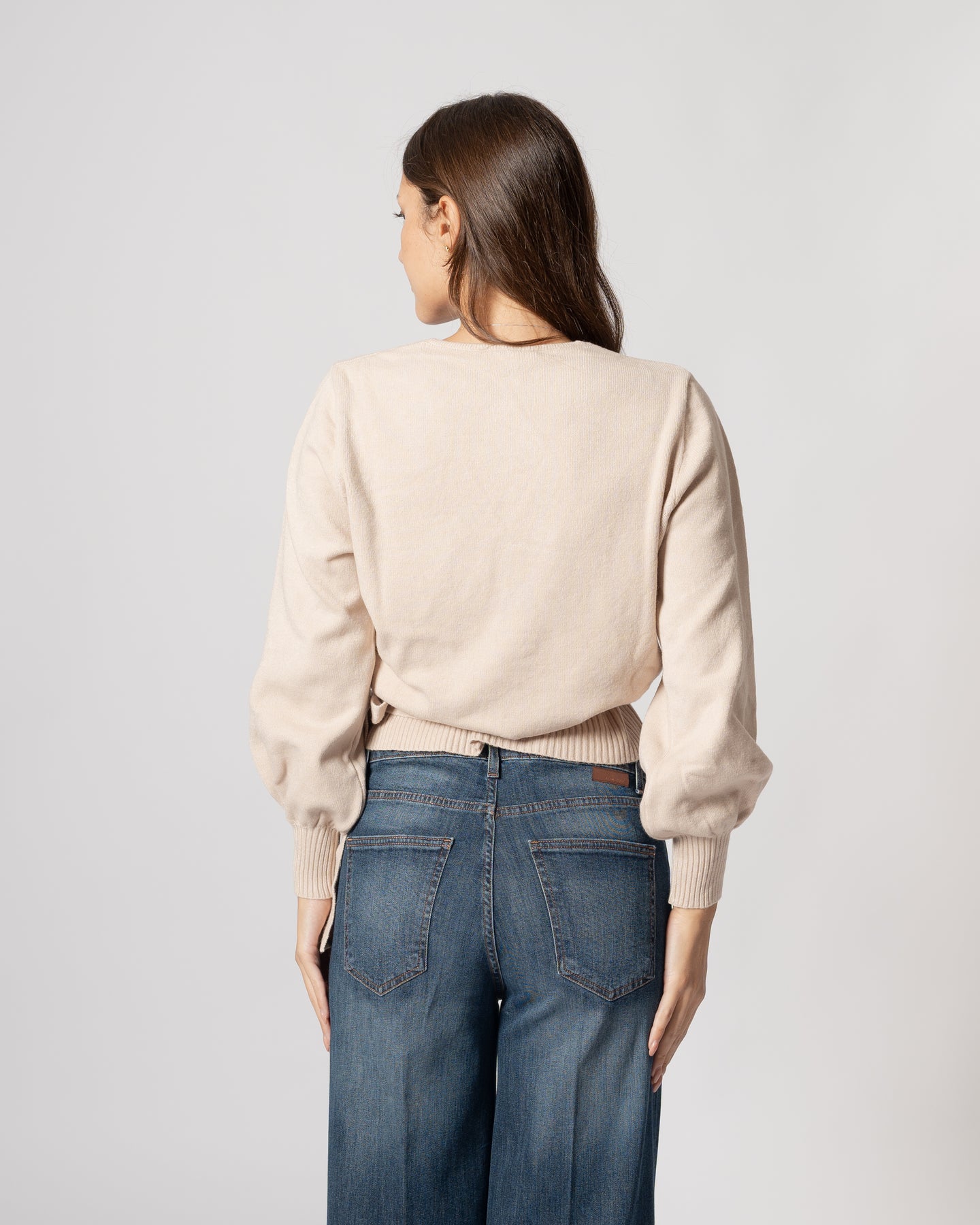Maglia manica lunga incrociata in tessuto viscosa colore beige.