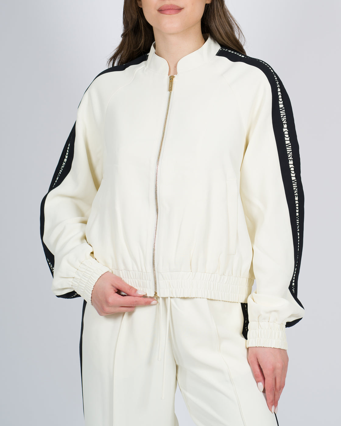 Felpa full zip con bande laterale nere con tasche laterali.