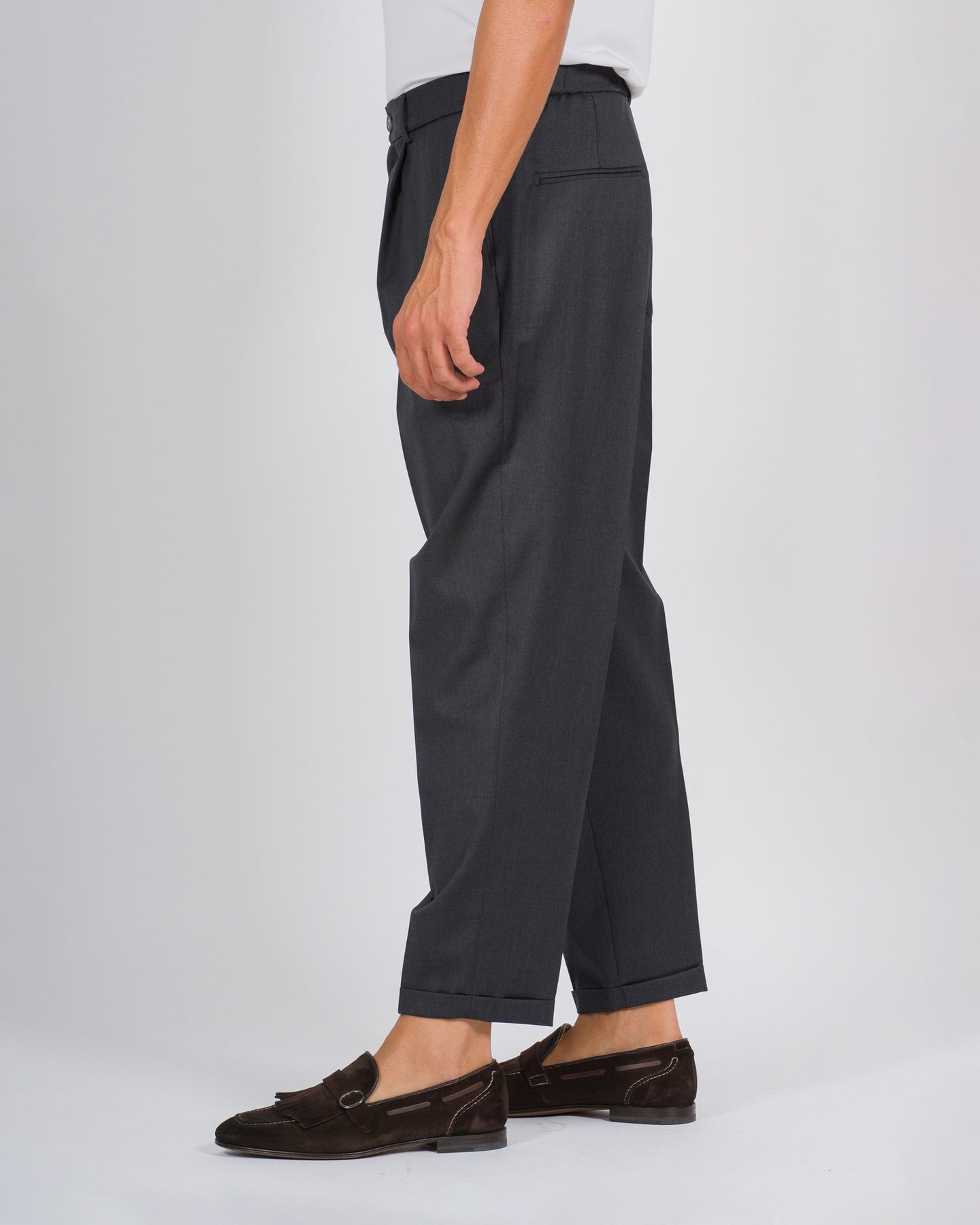 Il modello Otaru di Bonheur esprime un'eleganza rilassata e contemporanea, ispirata al guardaroba giapponese. Realizzato in un pregiato tessuto misto lana dalla mano morbida, questo pantalone coniuga comfort e raffinatezza, grazie a una costruzione studiata nei dettagli.La presenza di un mezzo elastico in vita garantisce una vestibilità versatile e disinvolta, mentre la pence frontale e il risvolto al fondo definiscono un volume moderno, ampio e fluido. Perfetto per chi ricerca capi essenziali dal carattere internazionale, rifiniti con l'artigianalità del Made in Italy.
